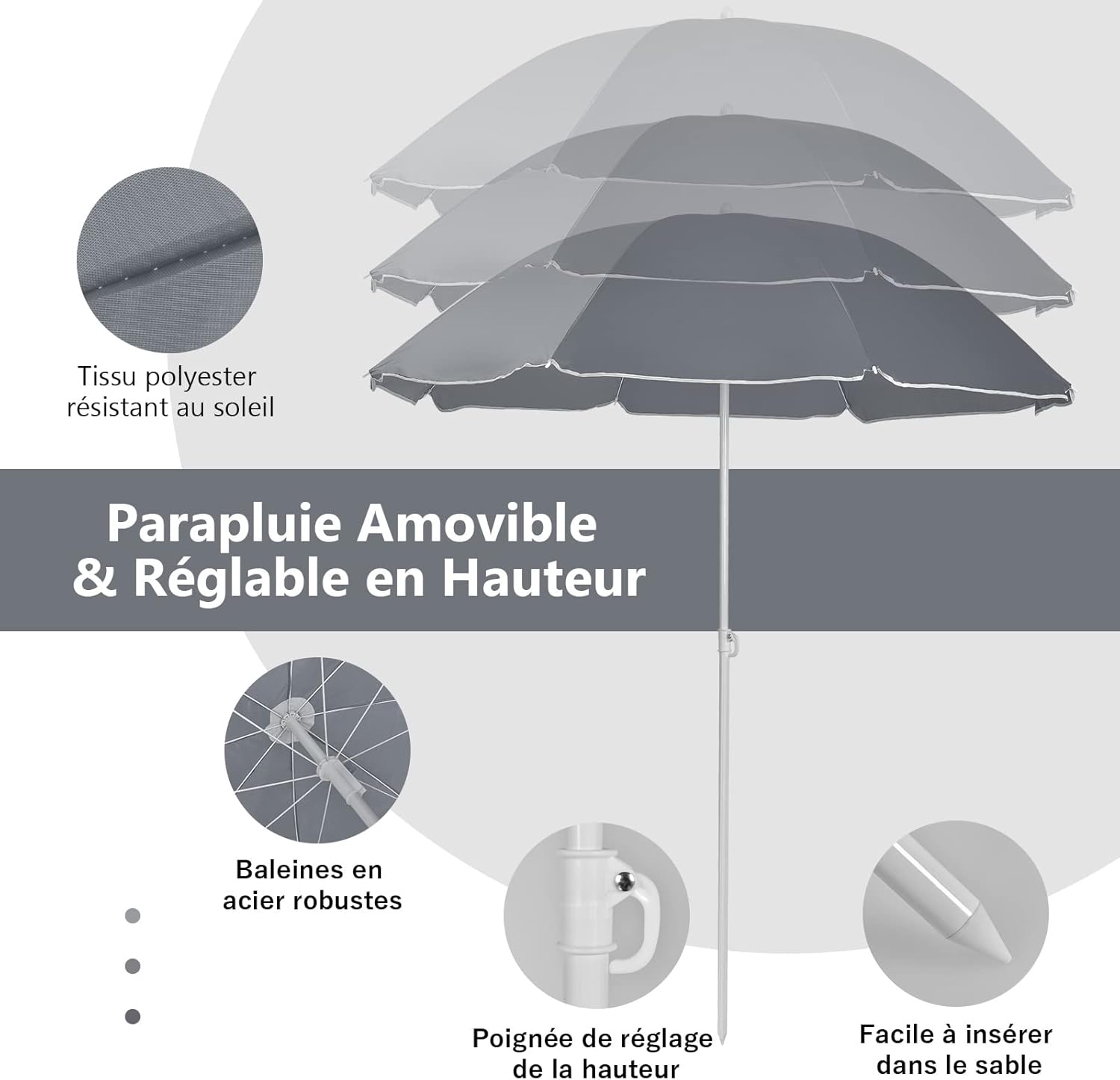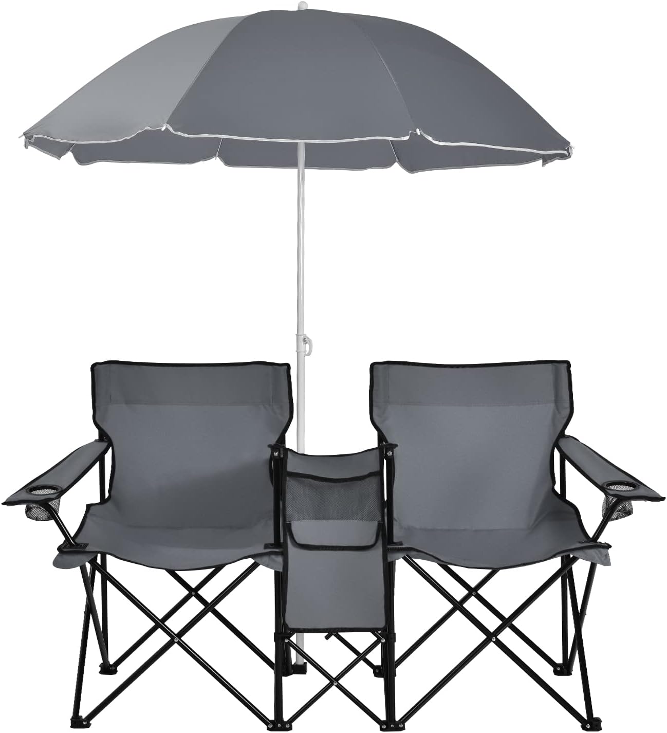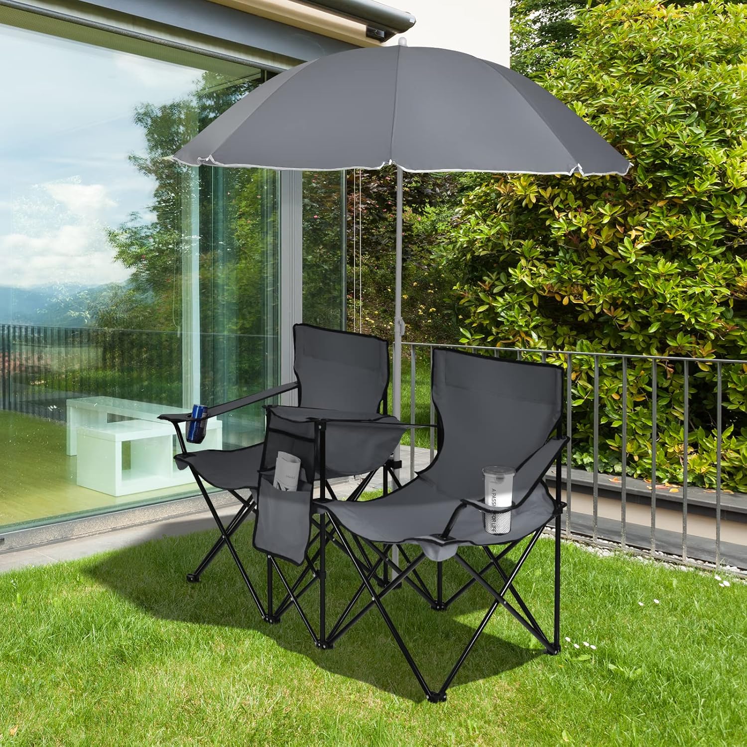 | Libellé | Chaise de camping pliante 2 places avec parasol fauteuil camping extérieur avce poche porte-gobelets et sac de transport, idéal pour plage pêche gris |
