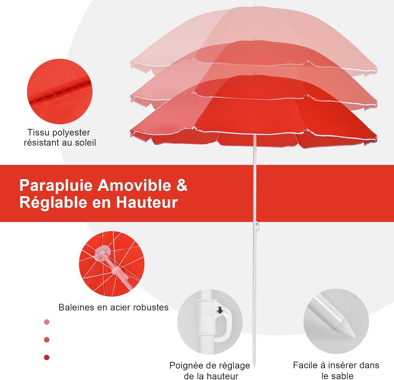 Notre siège double est très approprié pour les couples ou les amis et la famille. Sous la protection d’un grand parasol, vous pouvez être à la plage ou à l’extérieur sans craindre le soleil, le vent et la pluie. Le tissu Oxford épais de haute qualité et les tuyaux en acier épais rendent nos chaises non seulement durables, mais également confortables et stables. De plus, le porte-gobelet pratique et la poche thermique peuvent vous permettre de déguster de délicieuses boissons. La conception pliable et le poids léger le rendent facile à transporter, il est donc très approprié pour les voyages ou le camping.