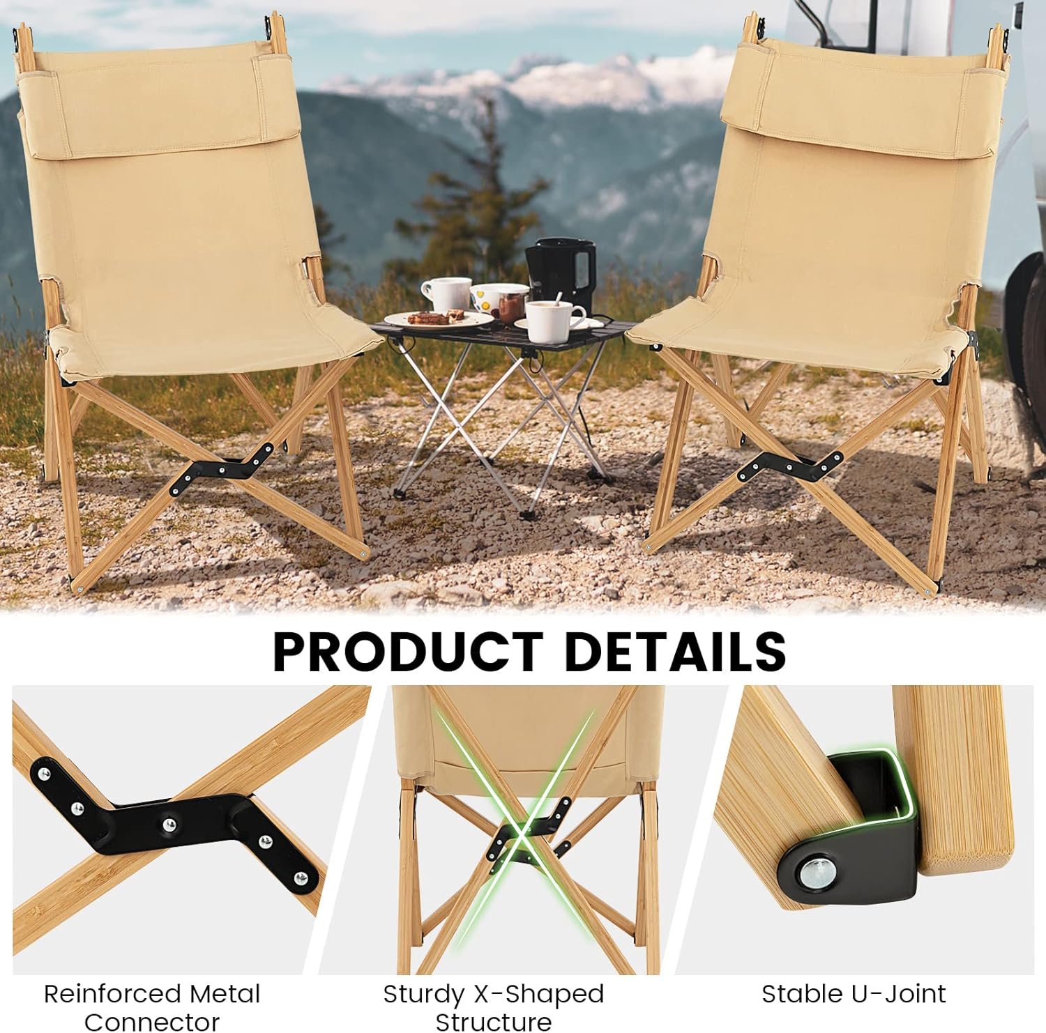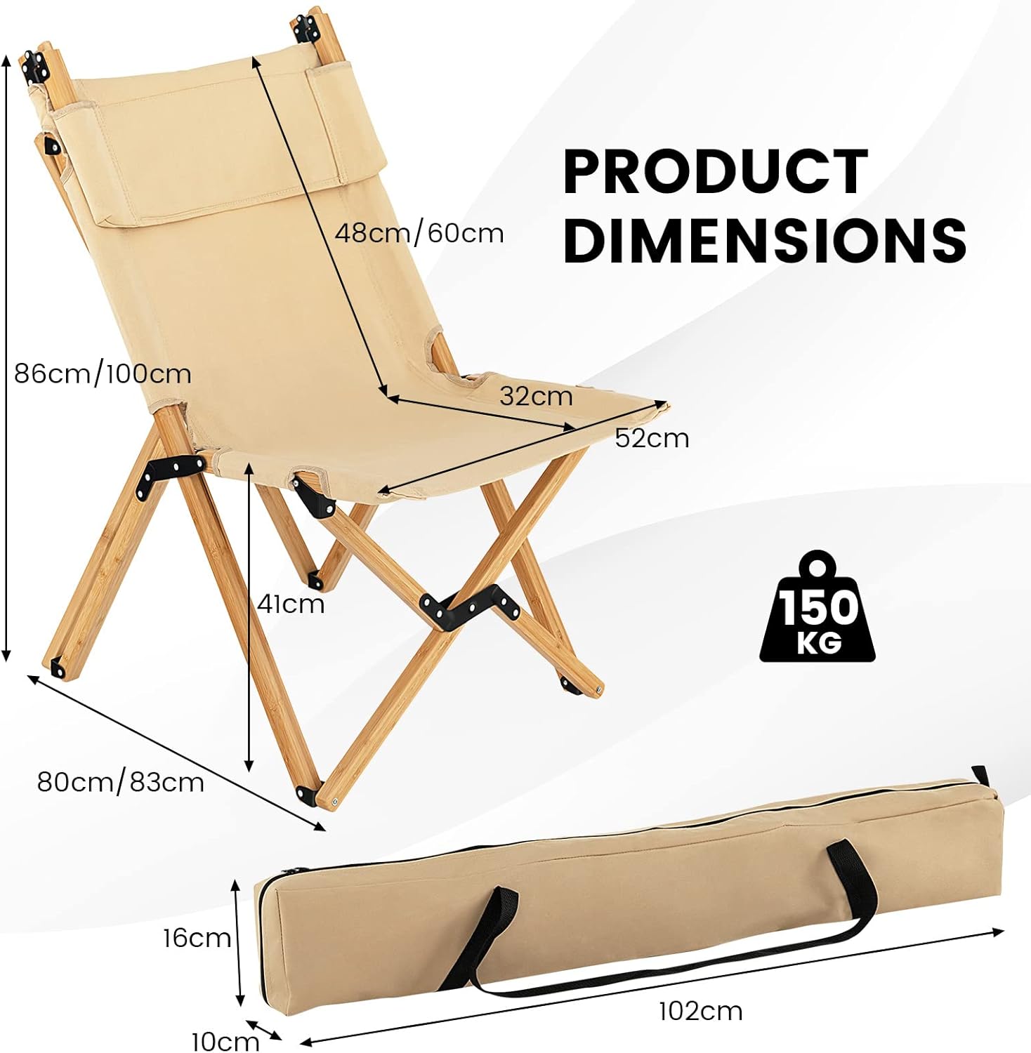 - Matériau sélectionné : Le cadre en bambou de qualité confère à la chaise de camping une haute résistance au frottement. La structure en forme de X assure une bonne stabilité et une capacité de charge de 150 kg. Tandis que la toile durable garantit une utilisation à long terme en extérieur.
