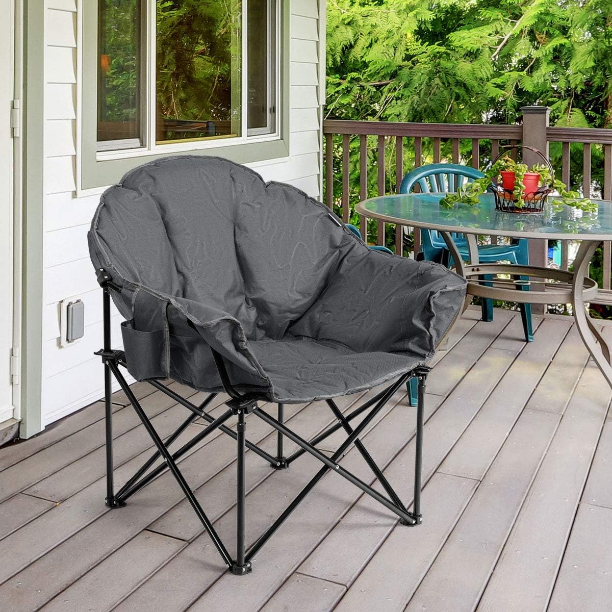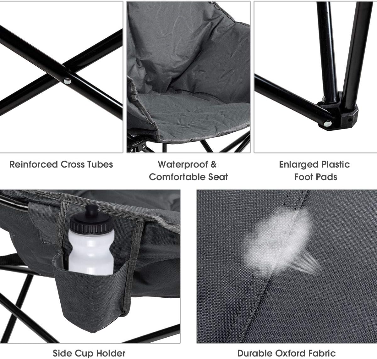 | Libellé | Chaise de camping pliante fauteuil portable xl avec coussin rembourré porte-gobelet sac de transport,gris |