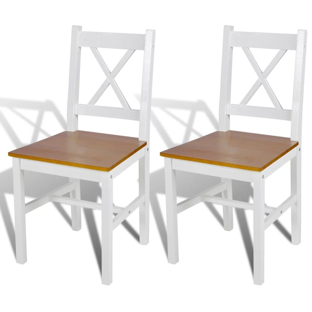 Les chaises sont faites de bois de pin massif, ce qui les rend très stables et durables. La chaise de salle à manger est également facile à nettoyer grâce à sa finition peinte. Couleur : Blanc et naturel Matériau : Bois de pin Taille de la chaise : 41,5 x 45,5 x 85,5 cm (l x P x H) Taille du siège : 41,5 x 41 cm (l x P) Hauteur du siège à partir du sol : 44,5 cm Hauteur du dossier : 41 cm Taille du pied avant : 3 x 3 cm (L x l) Taille du pied arrière : 4,5 x 3 cm (L x l) La livraison comprend 2 chaises de salle à manger