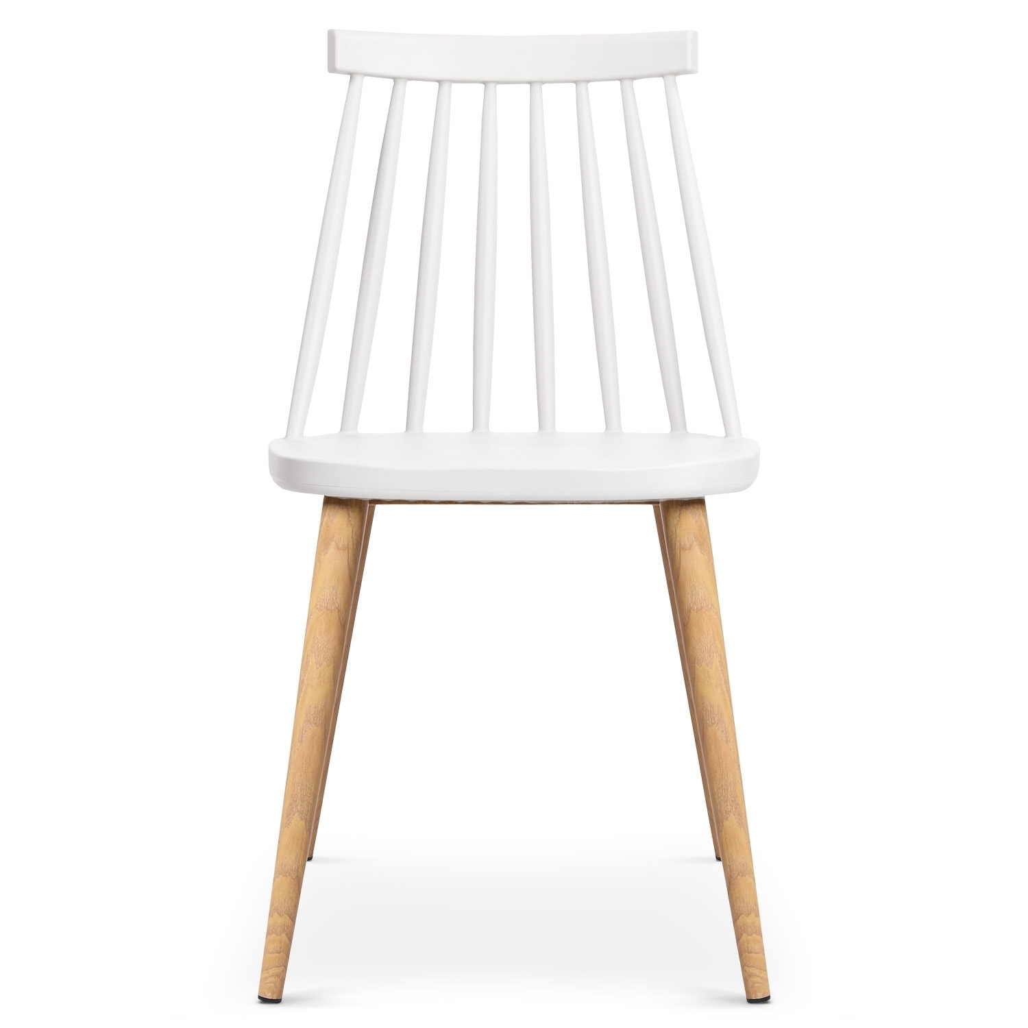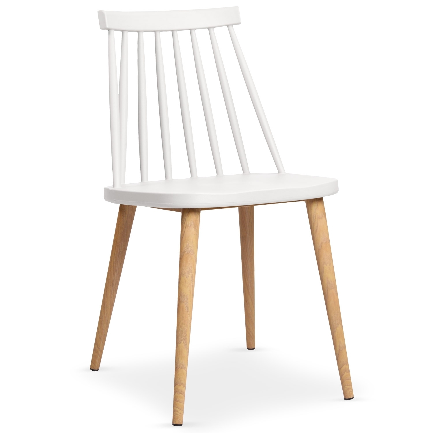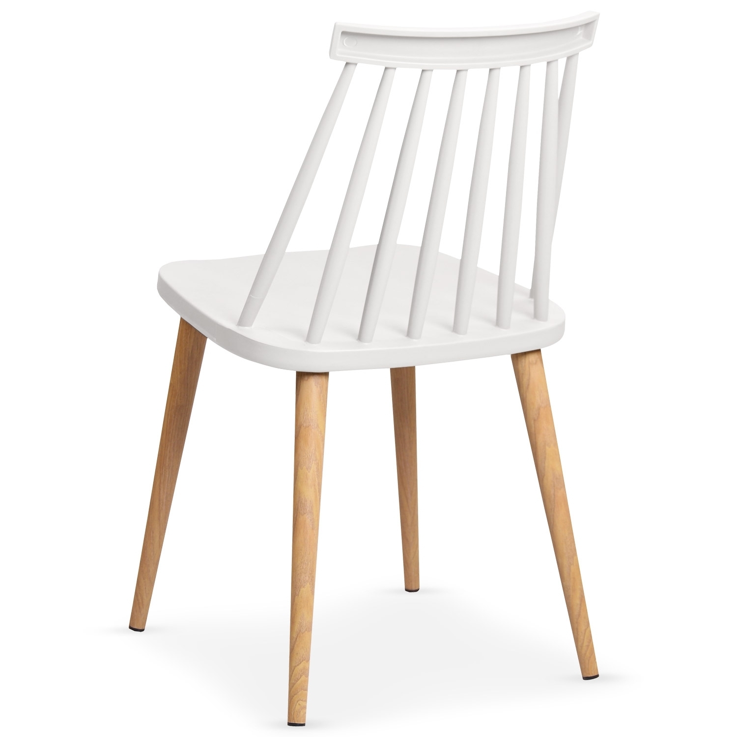 Lot de 2 chaises design avec des pieds en métal effet bois et une assise en polypropylène de couleur blanc collection Nordi. Avec son dossier design et ses pieds posés en biais elle adopte le look des meubles scandinaves très à la mode. L 42 x P 48,5 x H 77 cm - Assise H 45,5 cm