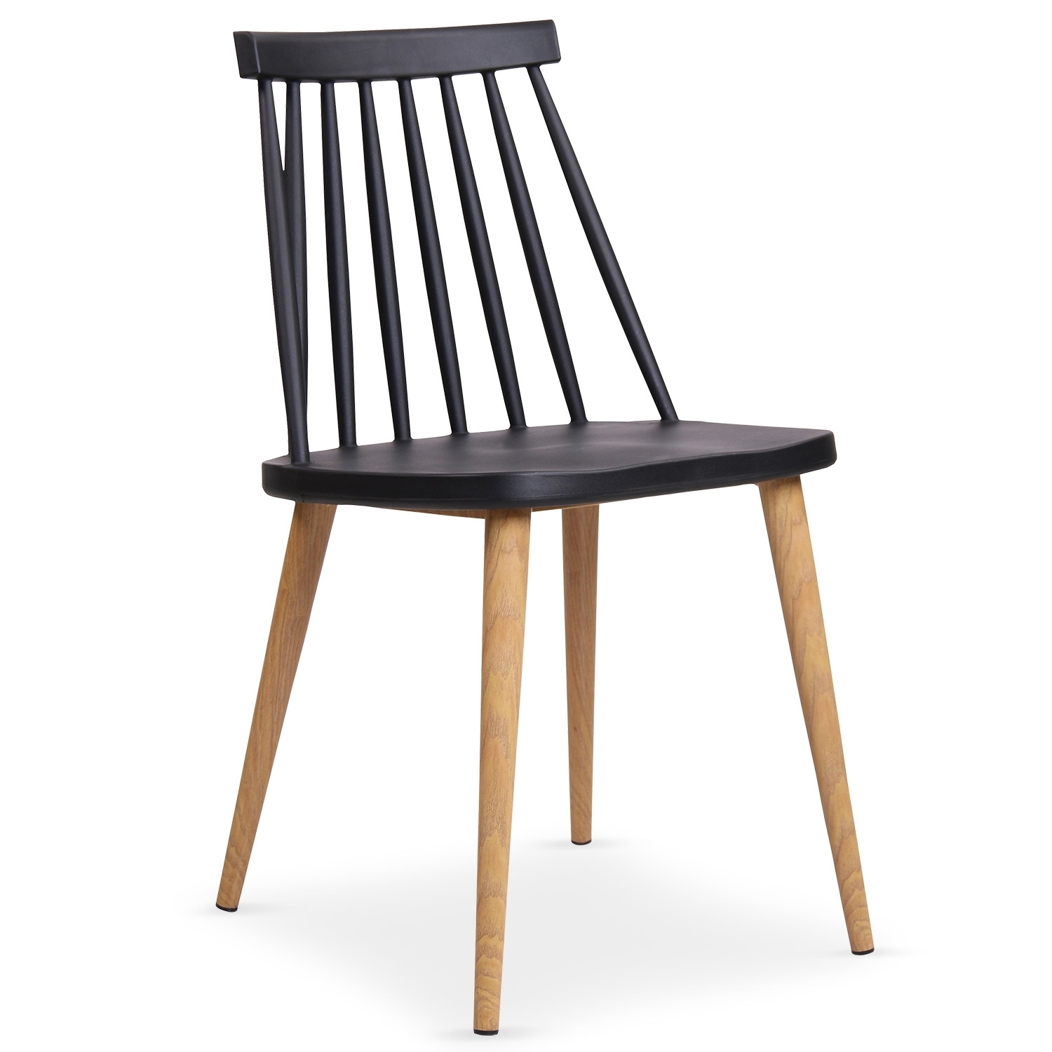 Lot de 2 chaises design avec des pieds en métal effet bois et une assise en polypropylène de couleur noir collection Nordi. Avec son dossier design et ses pieds posés en biais elle adopte le look des meubles scandinaves très à la mode. L 42 x P 48,5 x H 77 cm - Assise H 45,5 cm