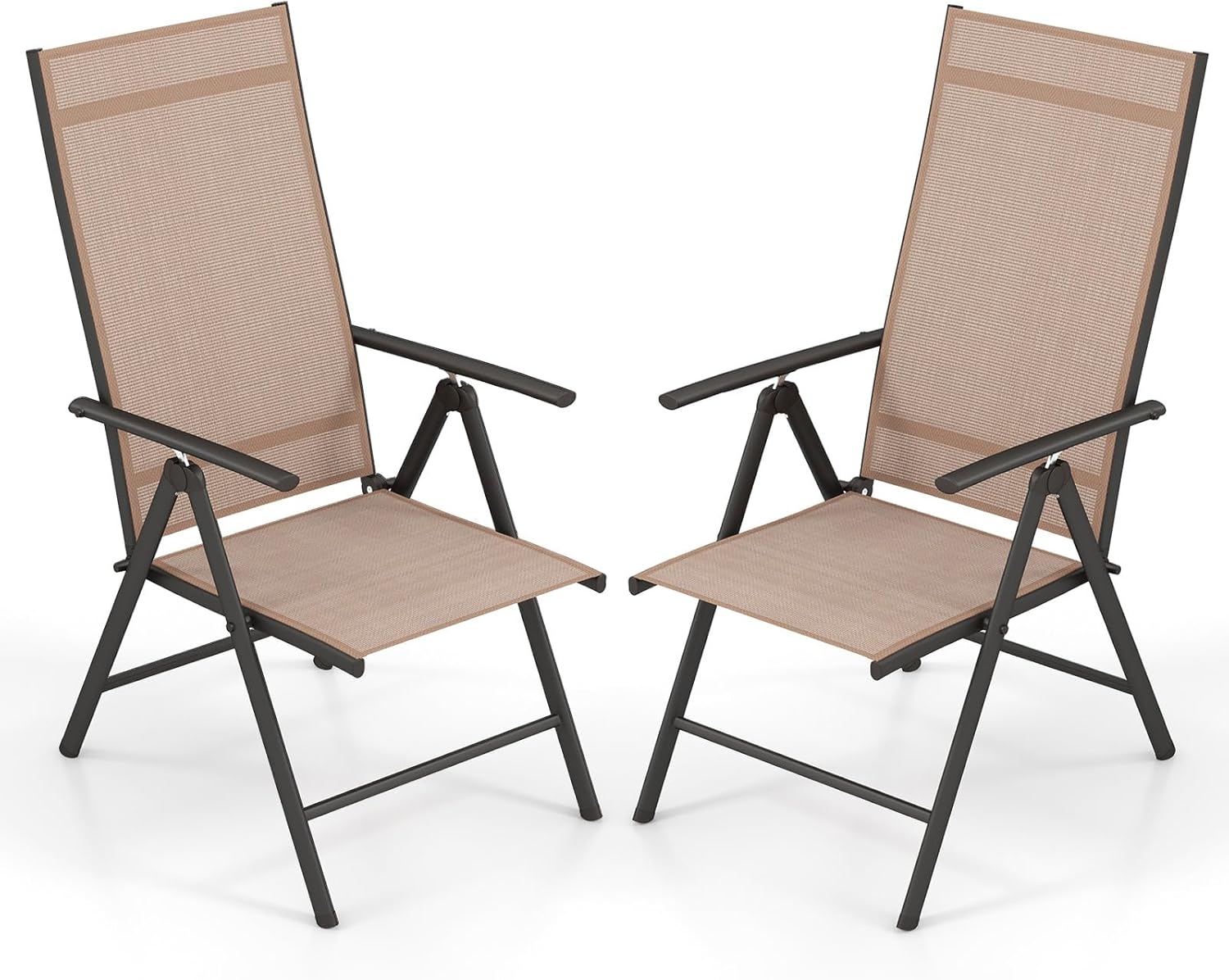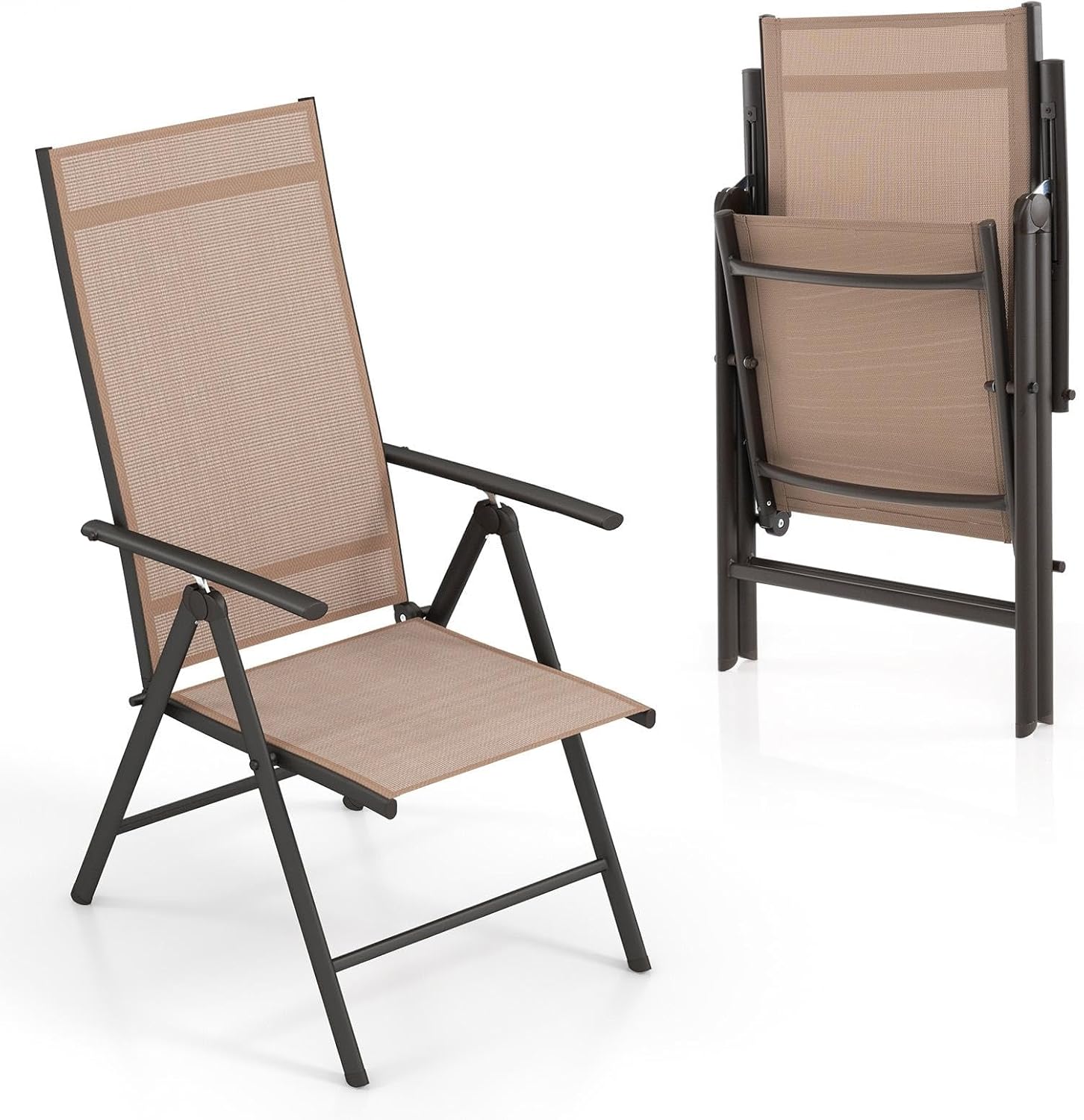 Libellé Chaise de jardin pliante, chaises à manger inclinables avec dossier réglable à 7 niveaux, accoudoir, fauteuils portables d'extérieur