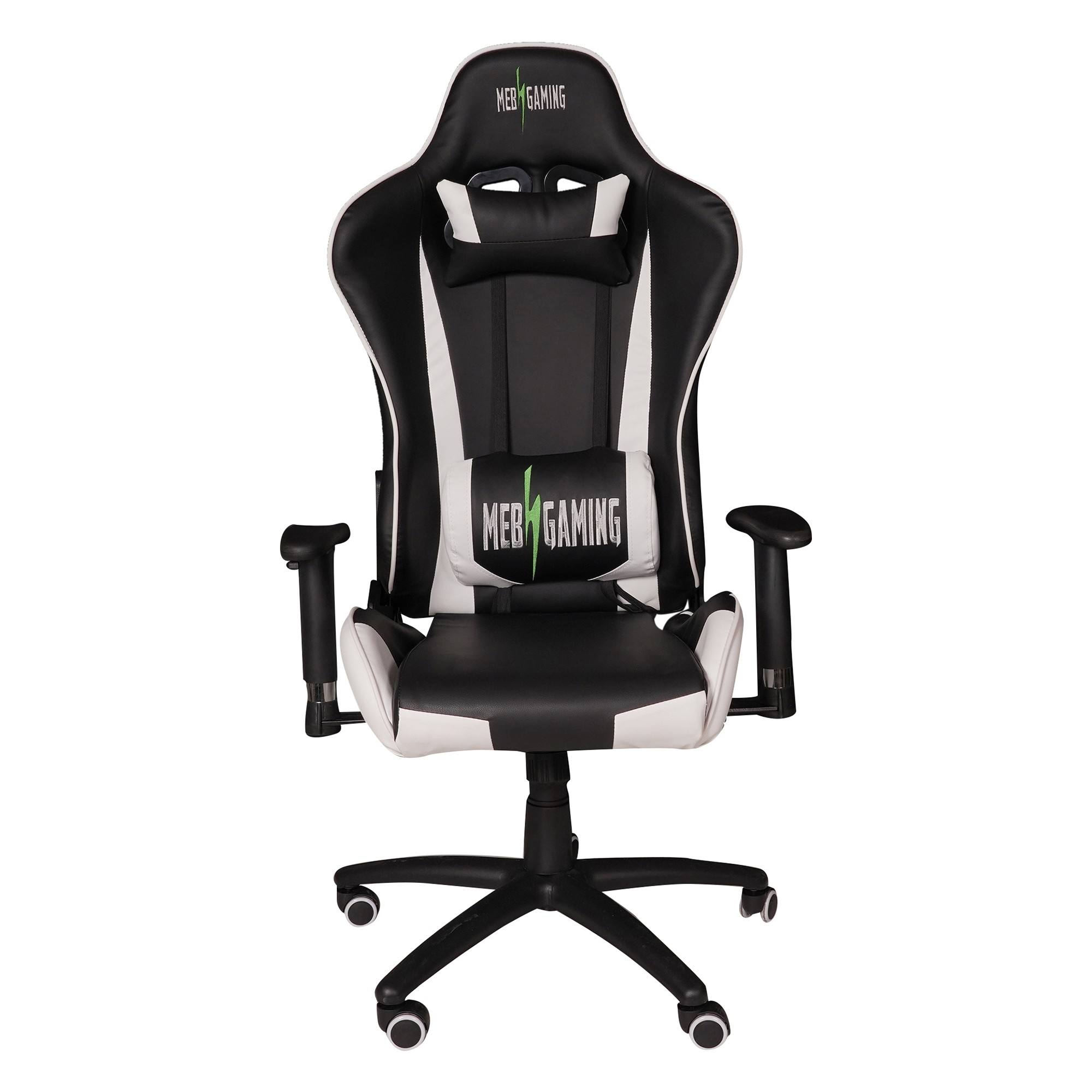 CHAISE DE JEU PROFESSIONNELLE - Chaise gamer Made in Italy avec structure en métal résistant et rembourrage en éco-cuir noir confortable avec inserts blancs