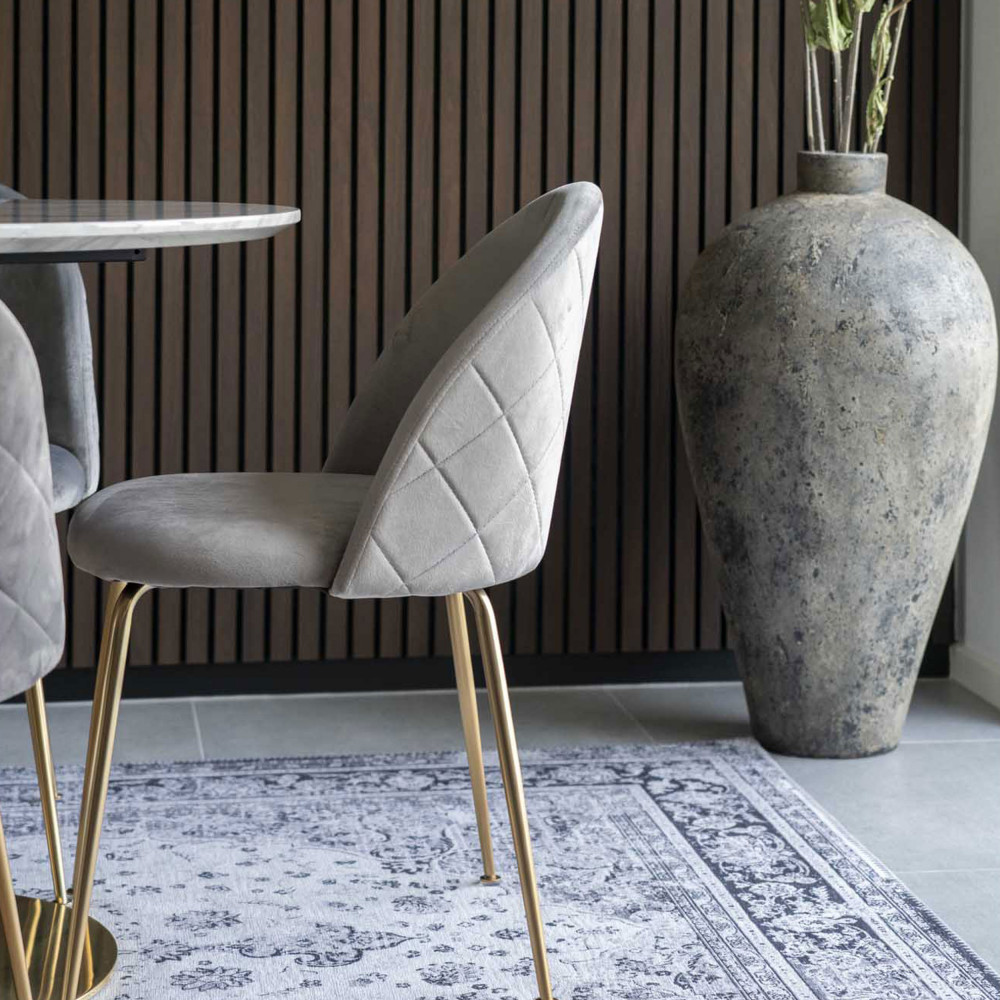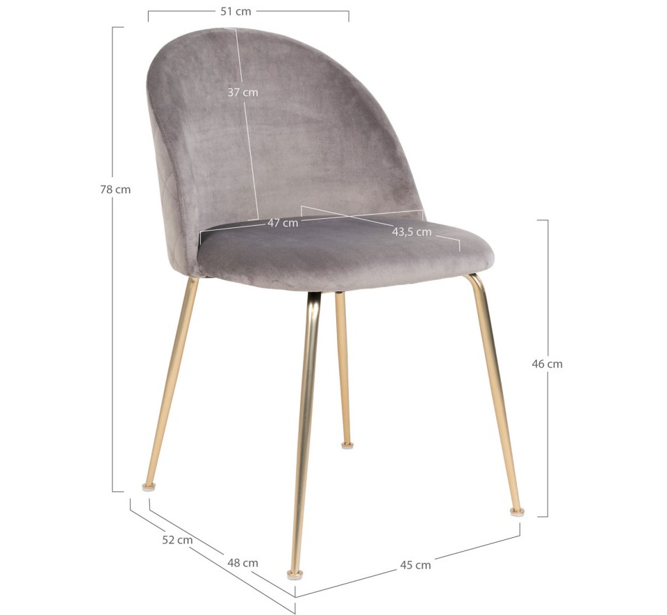 | Libellé | Chaise de salle à manger en velours gris avec pieds en laiton |