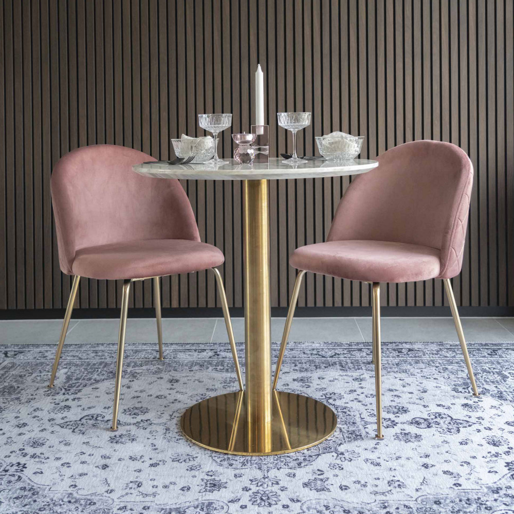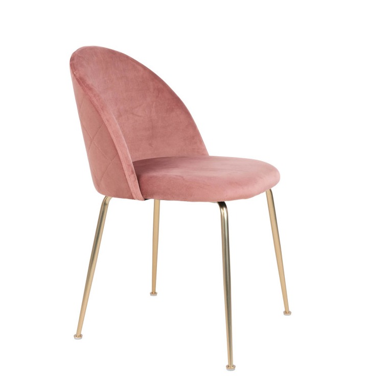 Chaise de salle à manger en velours rose avec pieds en laiton