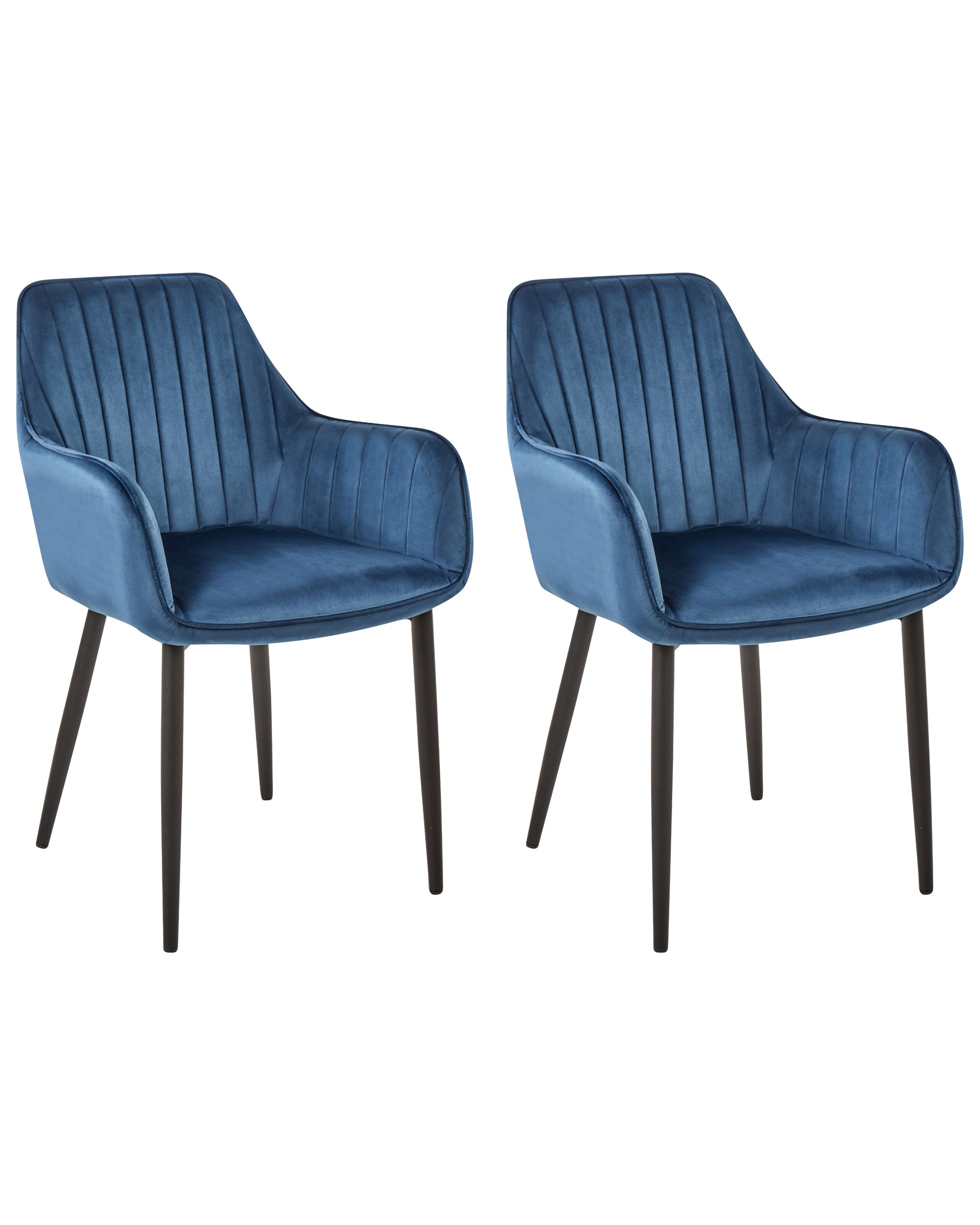 Chaise de salle à manger WELLSTON Set de 2 Velours Bleu foncé