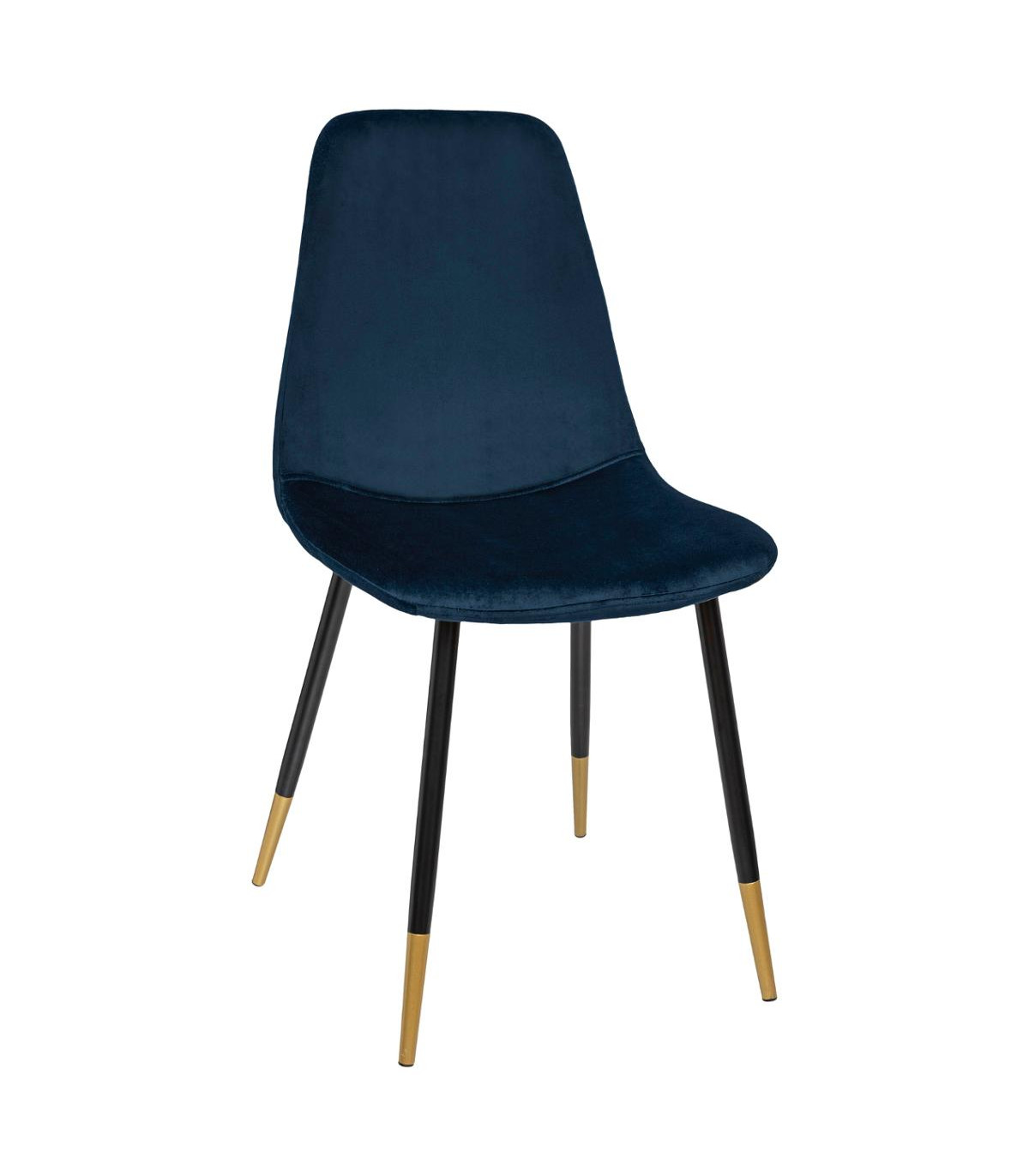 Chaise de table en Velours Bleu et Pieds en métal Noir finition dorée