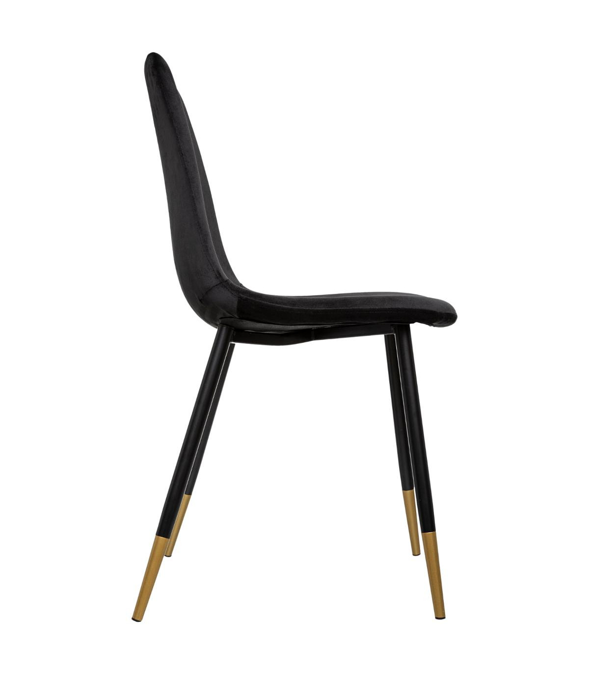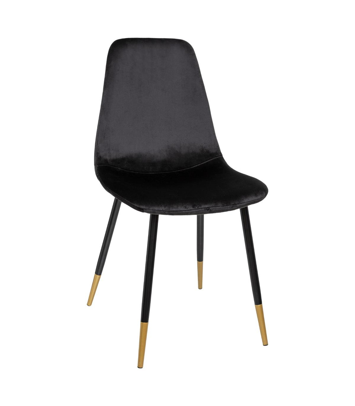 Chaise de table en Velours Noir et Pieds en métal Noir finition dorée