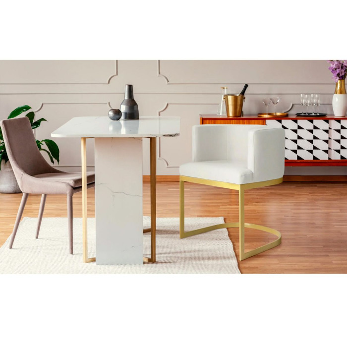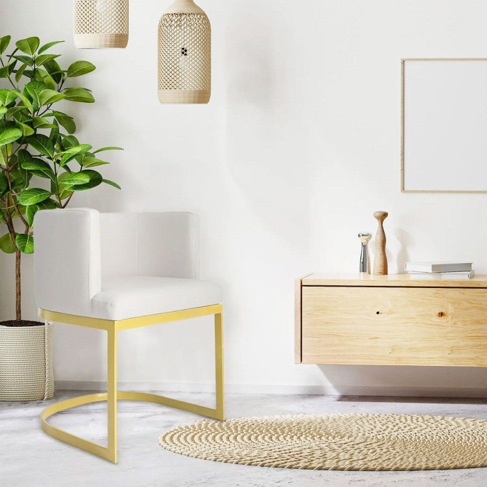 Chaise / Fauteuil Noellie Simili P.U. Blanc pieds Or