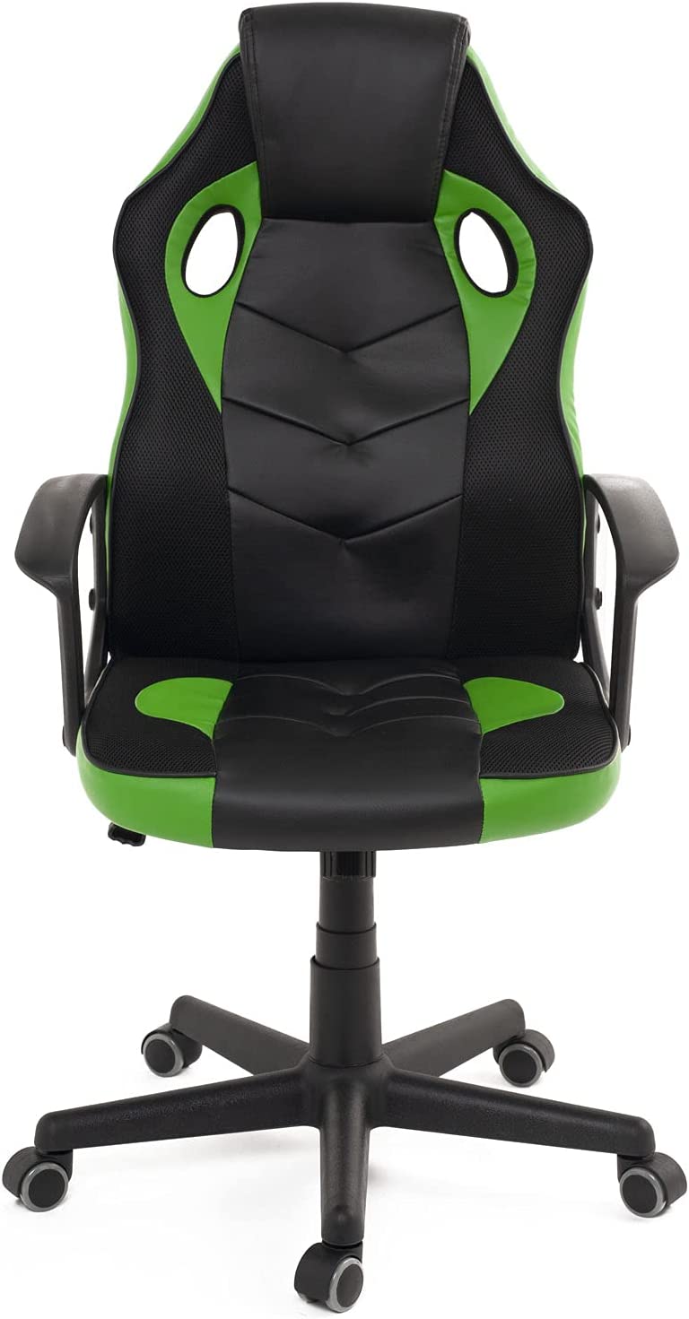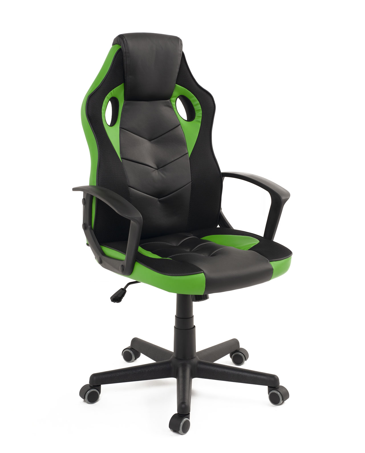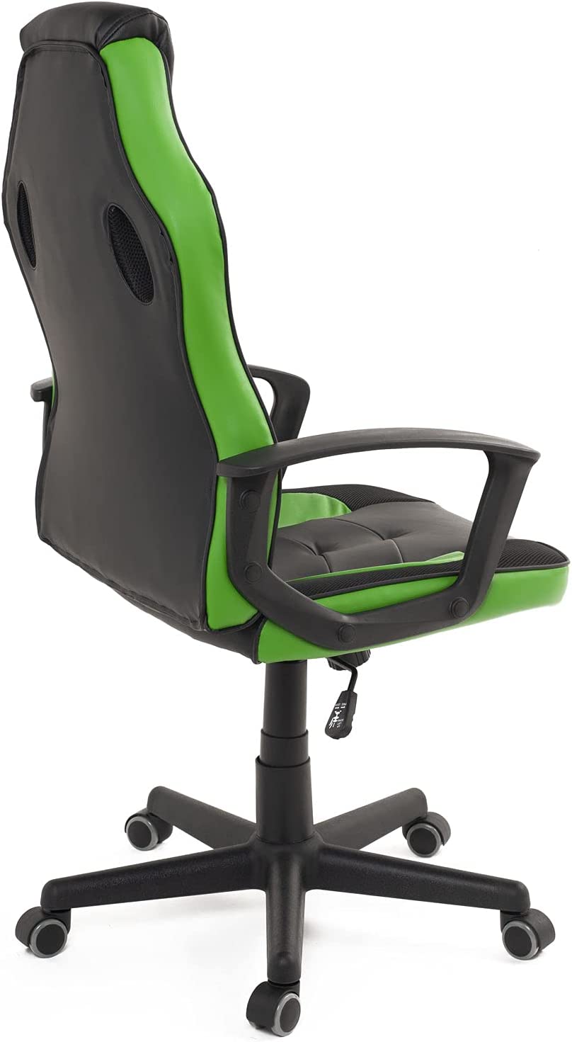Chaise Gamer junior siège basculant hauteur réglable pivotant roulettes souples SENA (noir vert)