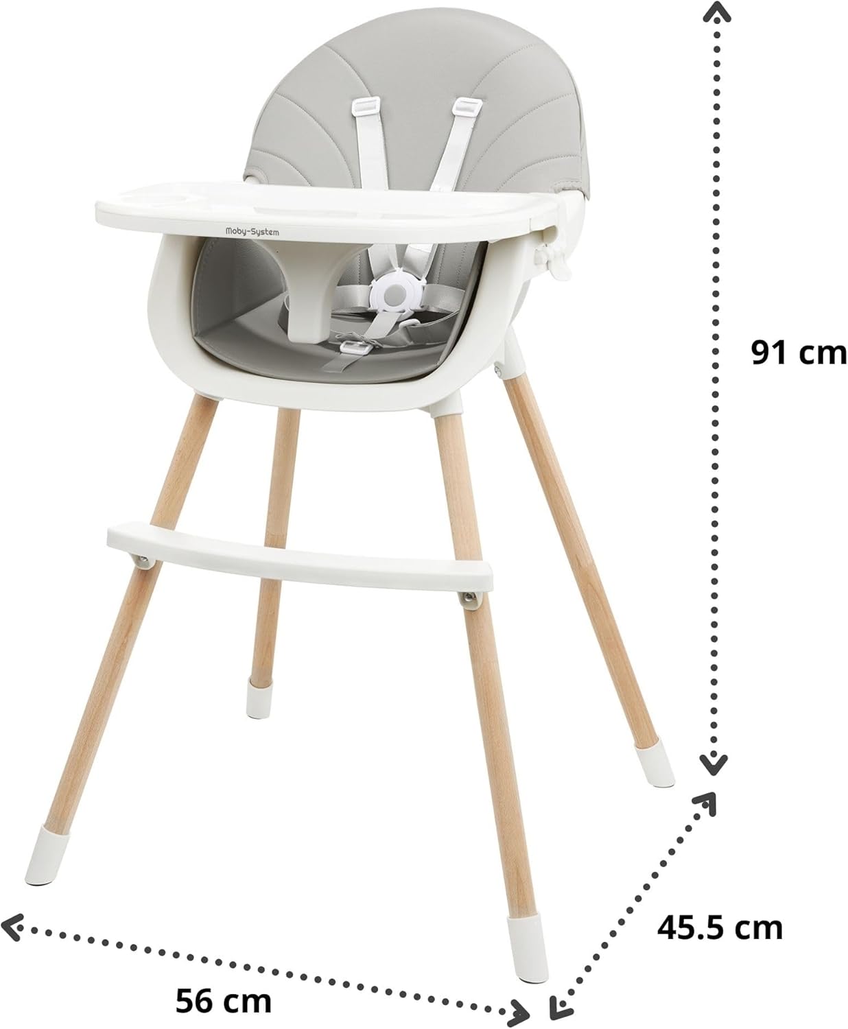 Chaise Haute Bébé +6 mois Evolutive, Chaise Enfant en Bois, 2 niveaux, poids max 25 Kg avec Plateau, Repo