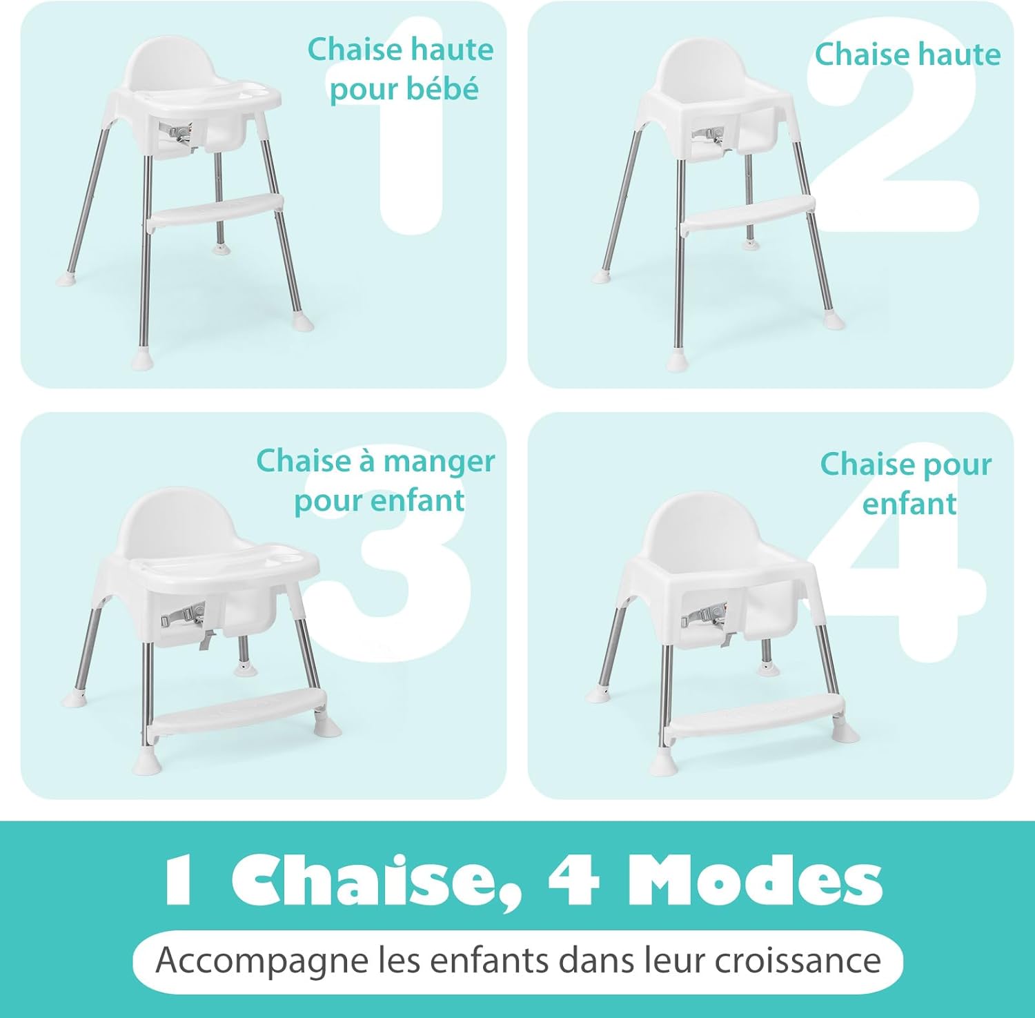 | Libellé | Chaise haute bébé, chaise haute évolutive 4 en 1 pour 6 à 36 mois,plateau amovible&hauteur réglable,blanc |
