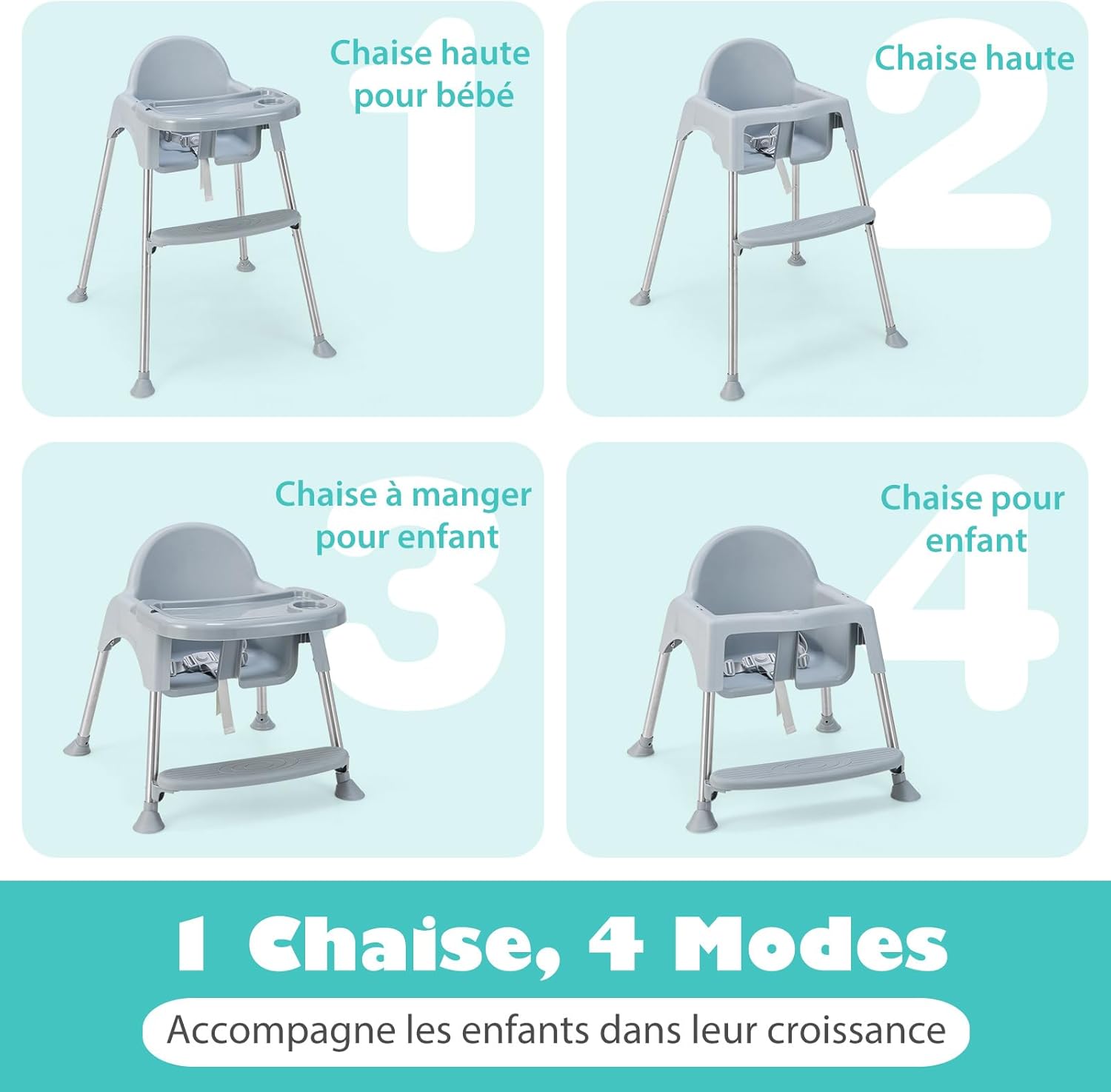 | Libellé | Chaise haute bébé chaise haute évolutive 4 en 1 pour 6 à 36 mois,plateau amovible & hauteur réglable,gris |