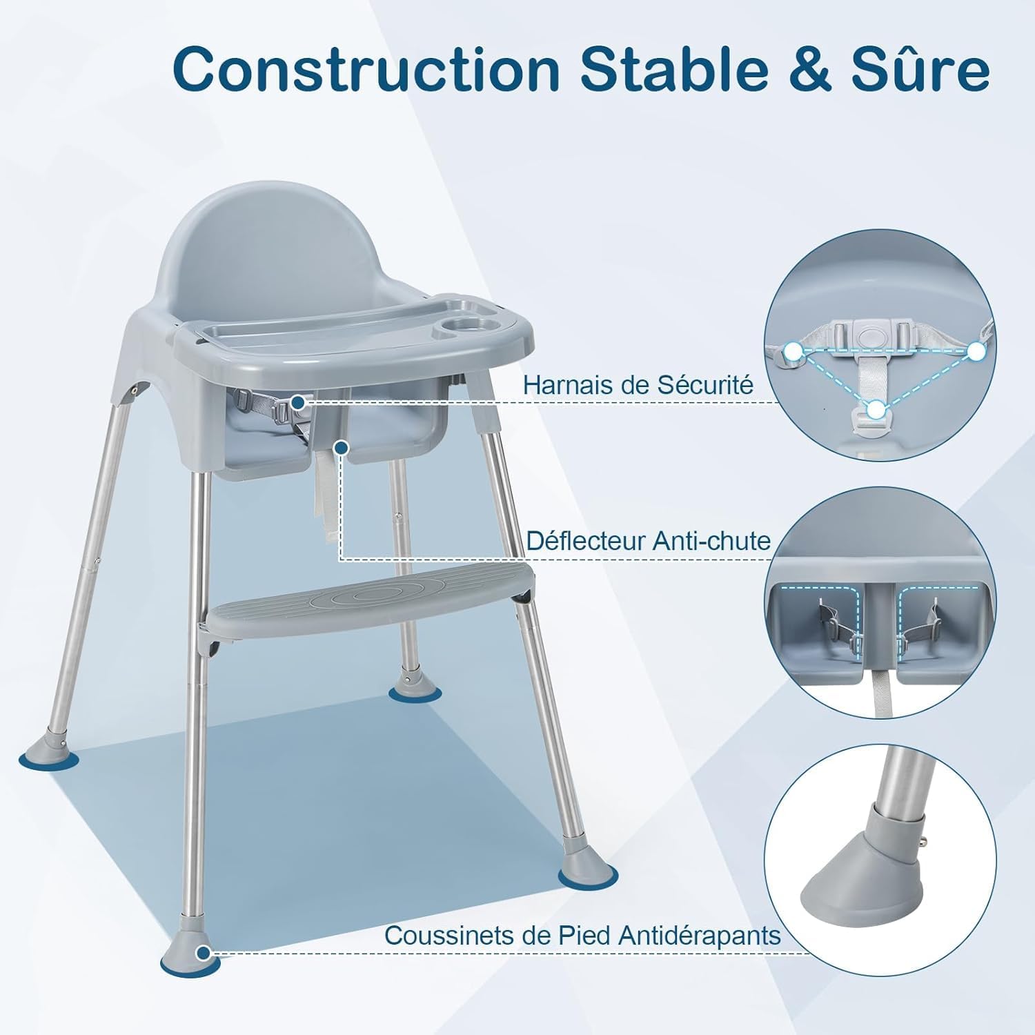 - Siège Ergonomique avec Harnais de Sécurité : Notre chaise haute pour bébé est conçue de manière ergonomique pour fournir un soutien solide à la colonne vertébrale de votre enfant afin de l’aider à maintenir une position assise saine. En outre, le harnais de sécurité à 3 points et la barrière anti-chute assurent la sécurité des enfants, gardant même le tout-petit agité en place.