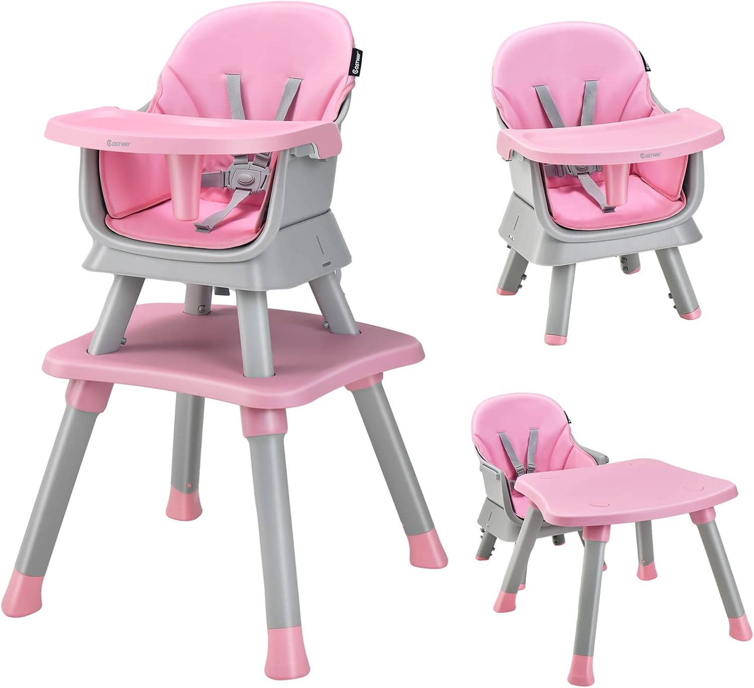 Cette chaise haute polyvalente soutient votre bébé à tous les stades de développement. Qu’il s’agisse d’une chaise haute ou d’une chaise basse, elle est parfaite pour nourrir votre bébé. De plus, le coussin moelleux permet à votre bébé de s’asseoir confortablement pendant les repas, et le harnais à 5 points et le matériau PP inoffensif assurent la sécurité de votre bébé. Si les plateaux ne conviennent pas, vous pouvez les pousser d’avant en arrière. Après avoir mangé, le plateau amovible est facile à mettre au lave-vaisselle. Le siège peut également être attaché à une chaise ordinaire à l’aide d’une sangle de connexion, ou il peut être combiné dans une chaise de bureau et monté sur un plateau de briques pour que votre enfant puisse étudier ou jouer avec des blocs. Sans aucun doute, c’est le cadeau de croissance parfait pour les bébés âgés de 6 à 36 mois!