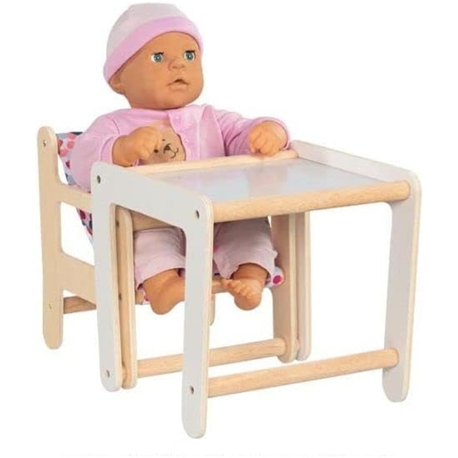 Chaise haute en bois pour poupée avec table 2 en 1
