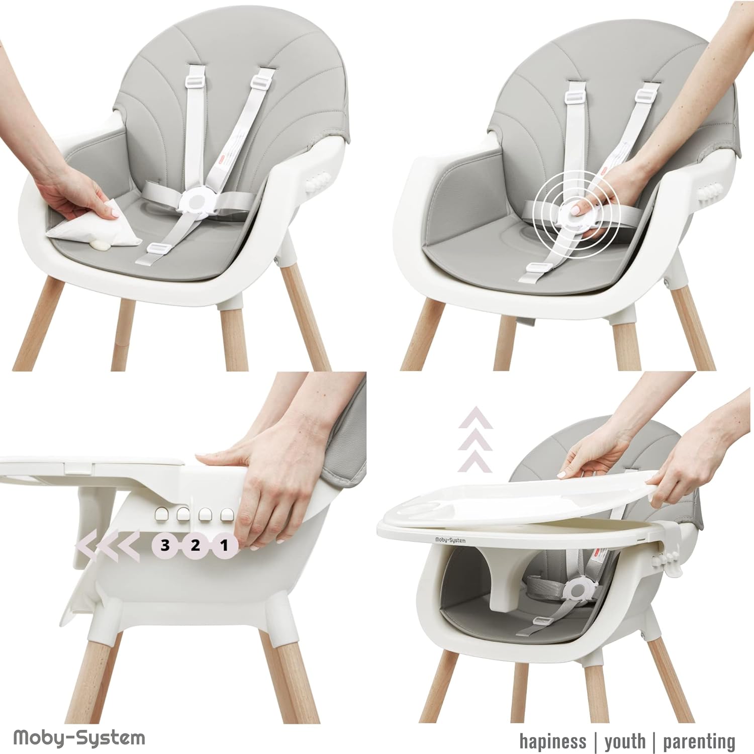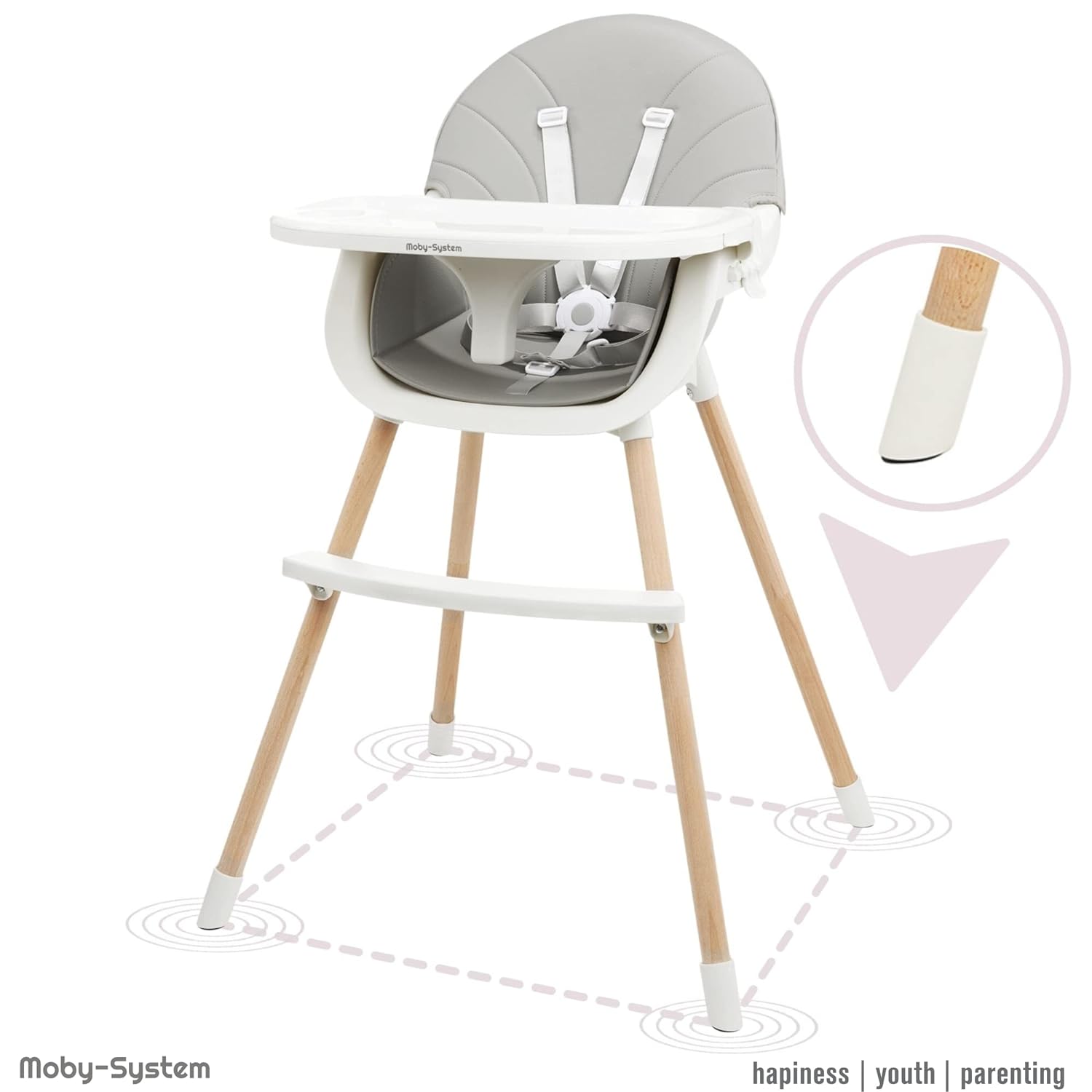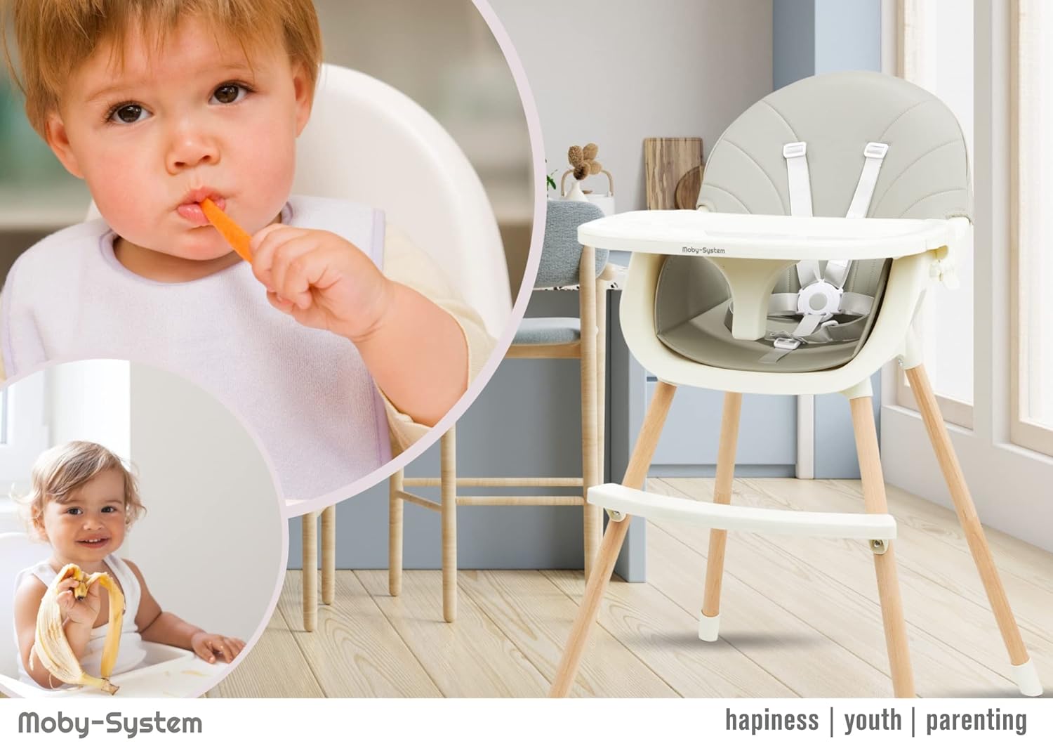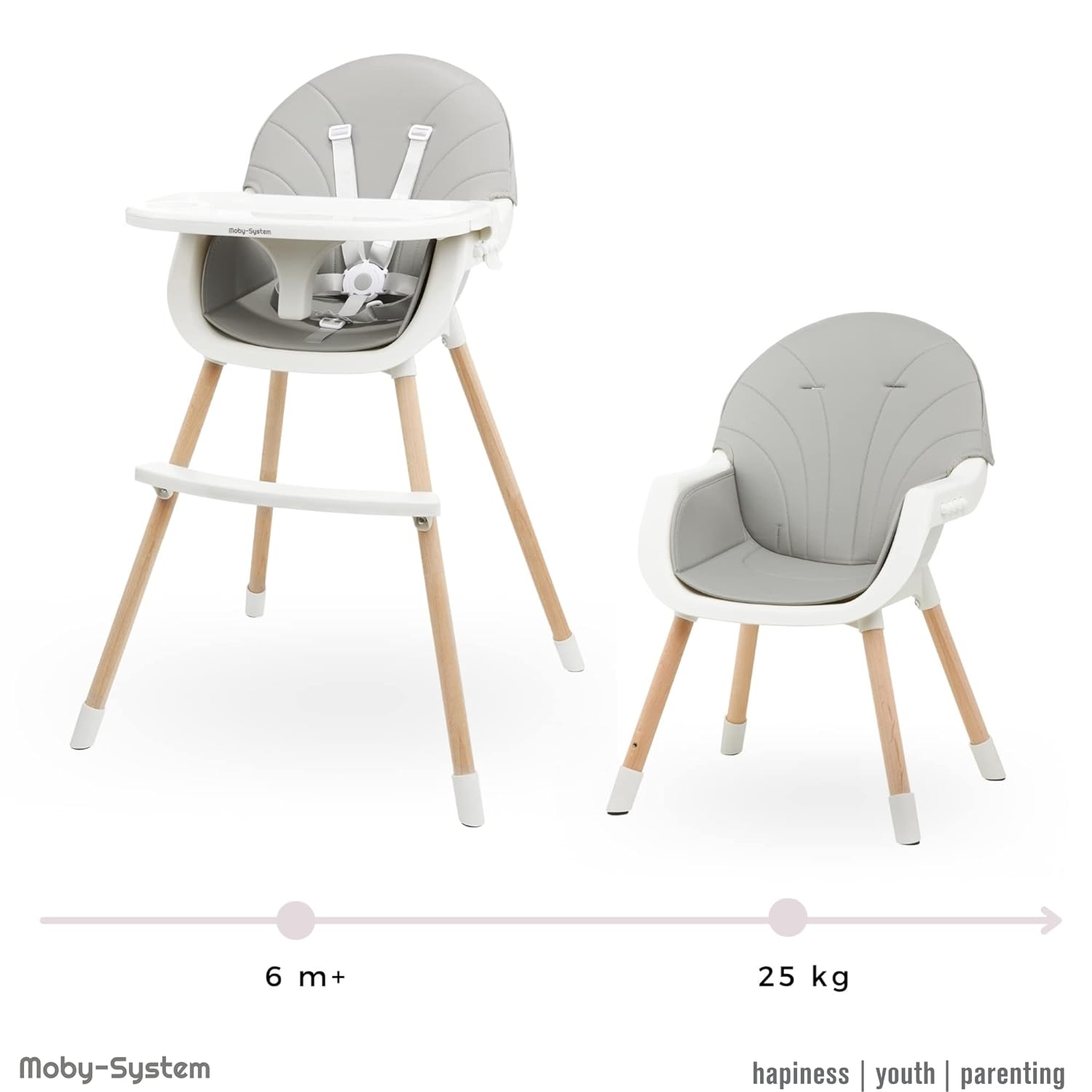 | Libellé | Chaise Haute pour Enfants Amelia, Moby-System, 3 en 1 pour Enfants de 6 mois à 6 ans, Chaise pou Enfant Plateau, repose-pieds, ceintures de sécurité |