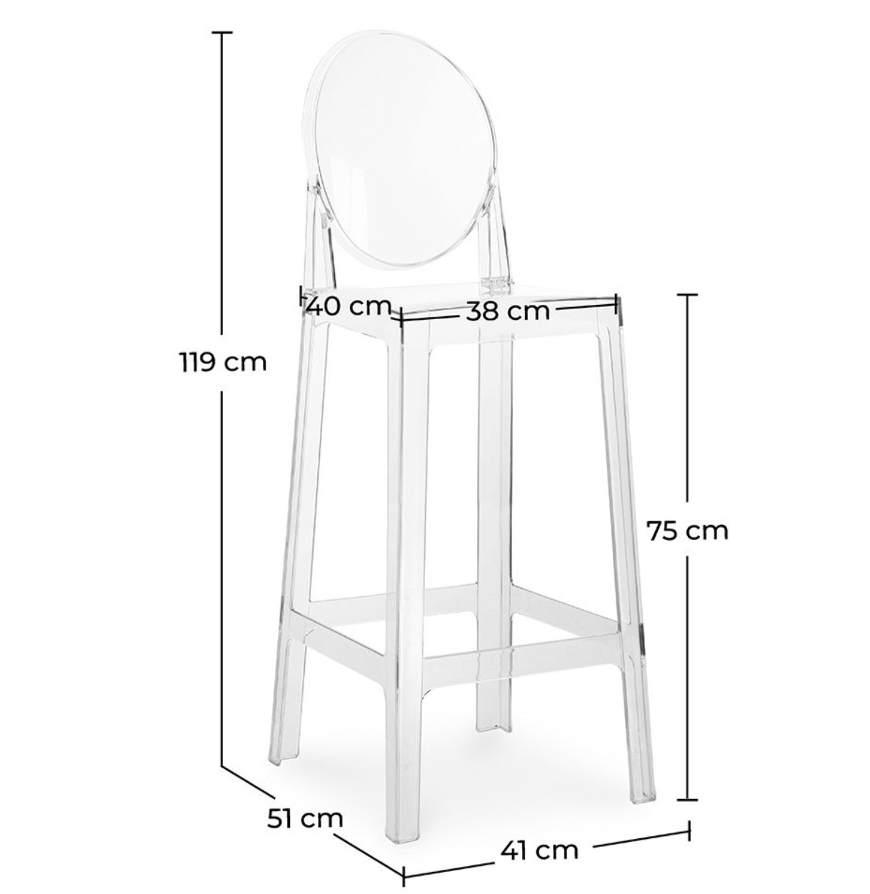 Chaise haute transparente Elisabeth 75cm