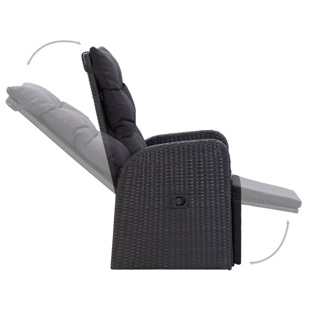Chaise inclinable de jardin et coussin Résine tressée Noir