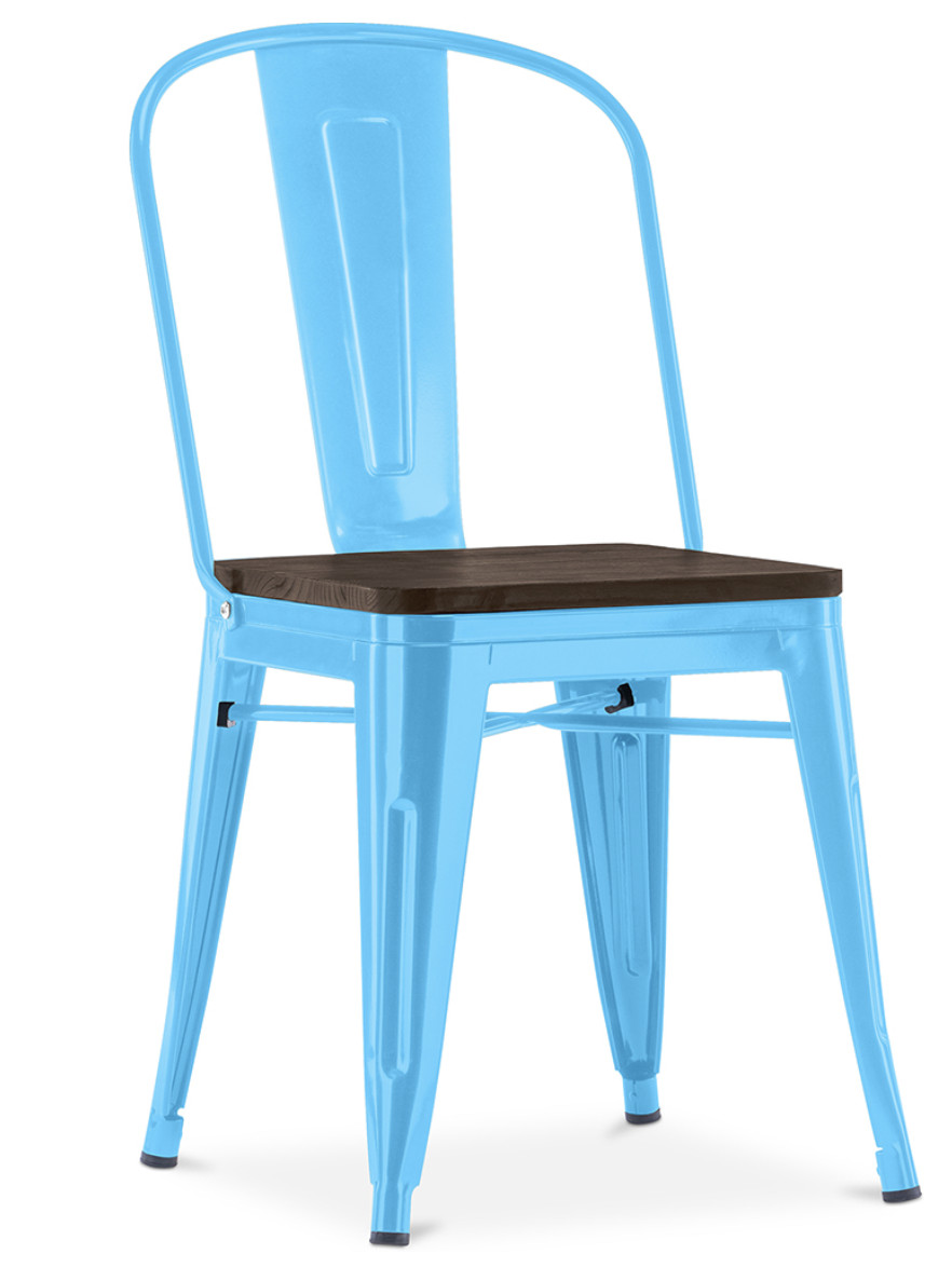 Chaise industrielle acier brillant et assise en bois massif marron Reko-Couleur Bleu turquoise