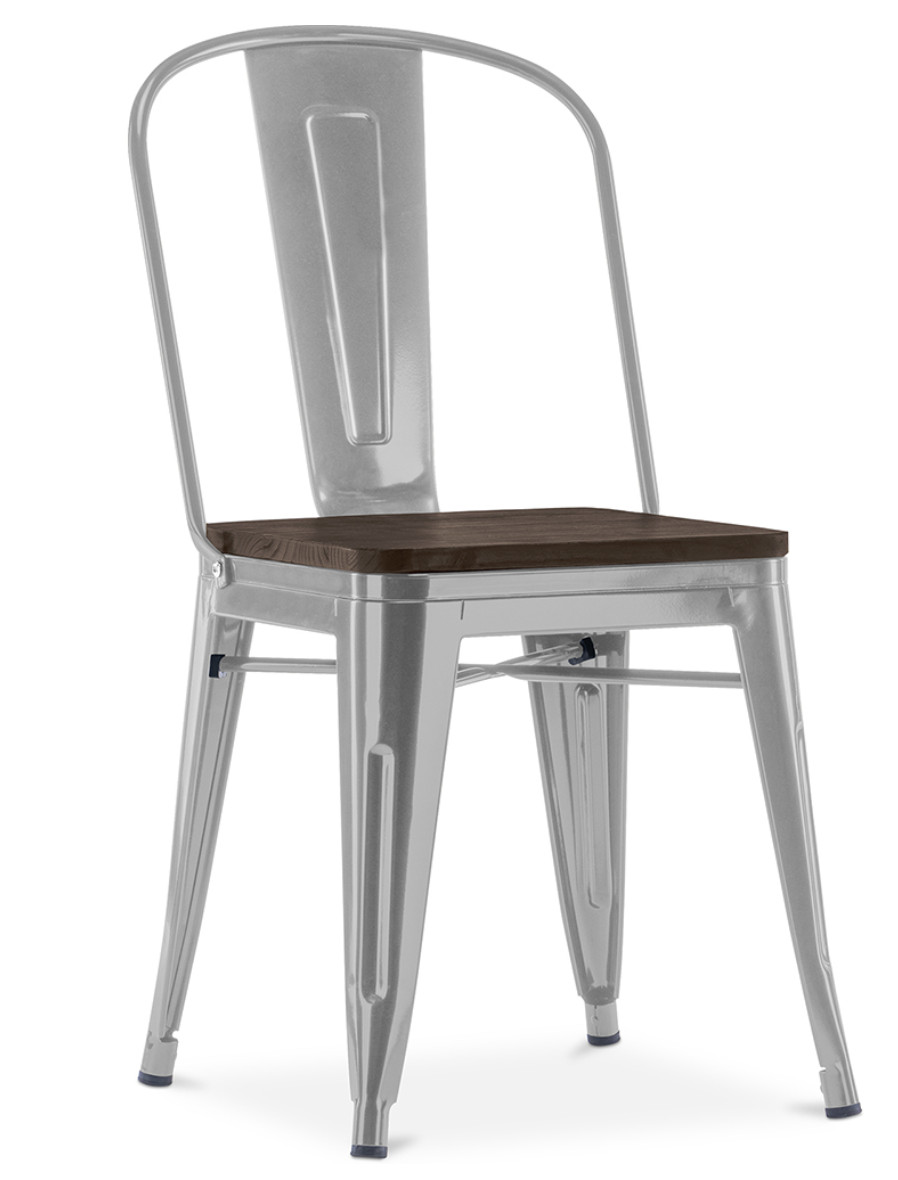 Chaise industrielle acier brillant et assise en bois massif marron Reko-Couleur Gris clair