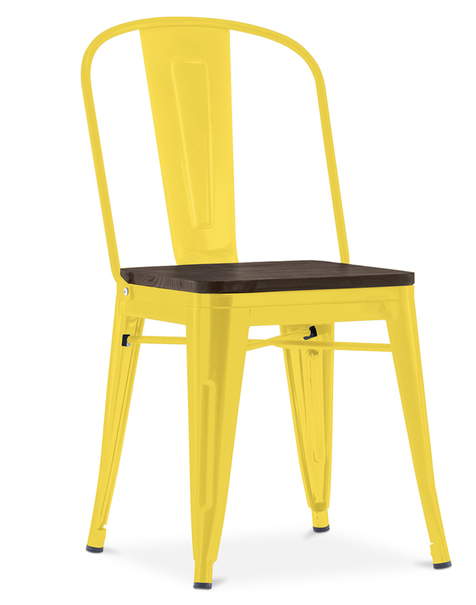 Chaise industrielle acier brillant et assise en bois massif marron Reko-Couleur Jaune