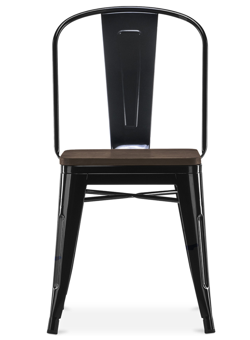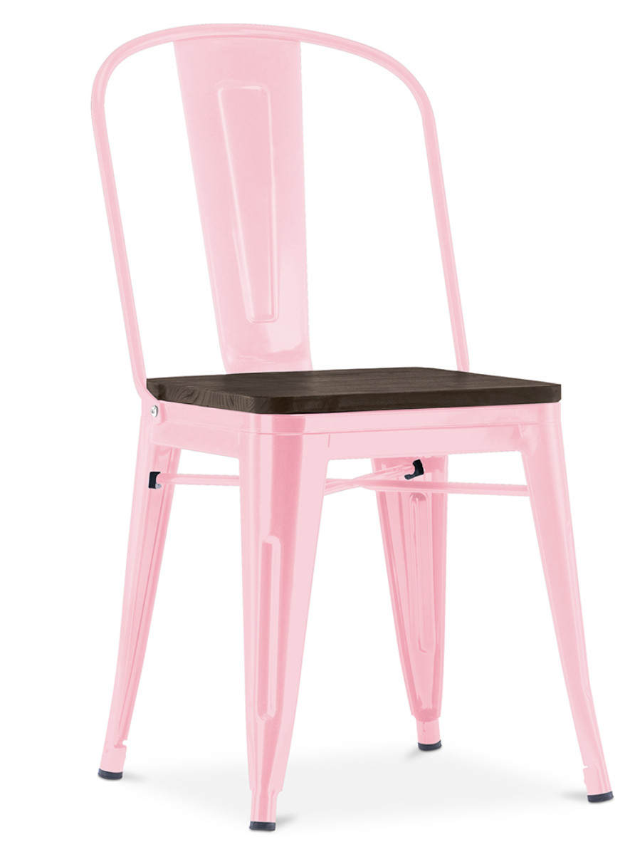 Chaise industrielle acier brillant et assise en bois massif marron Reko-Couleur Rose