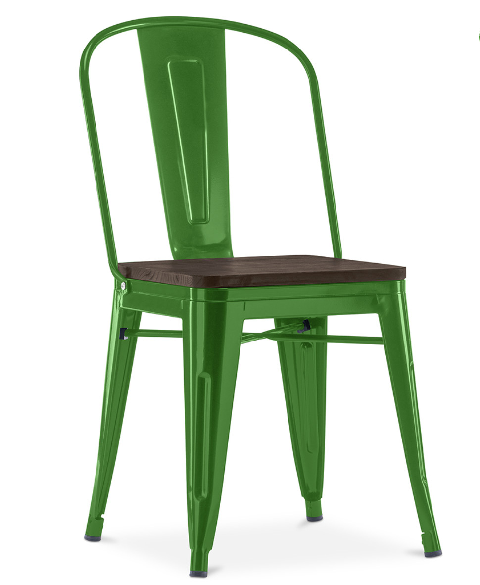 Chaise industrielle acier brillant et assise en bois massif marron Reko-Couleur Vert