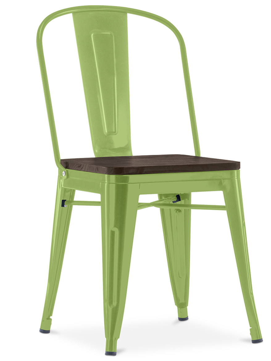 Chaise industrielle acier brillant et assise en bois massif marron Reko-Couleur Vert pistache