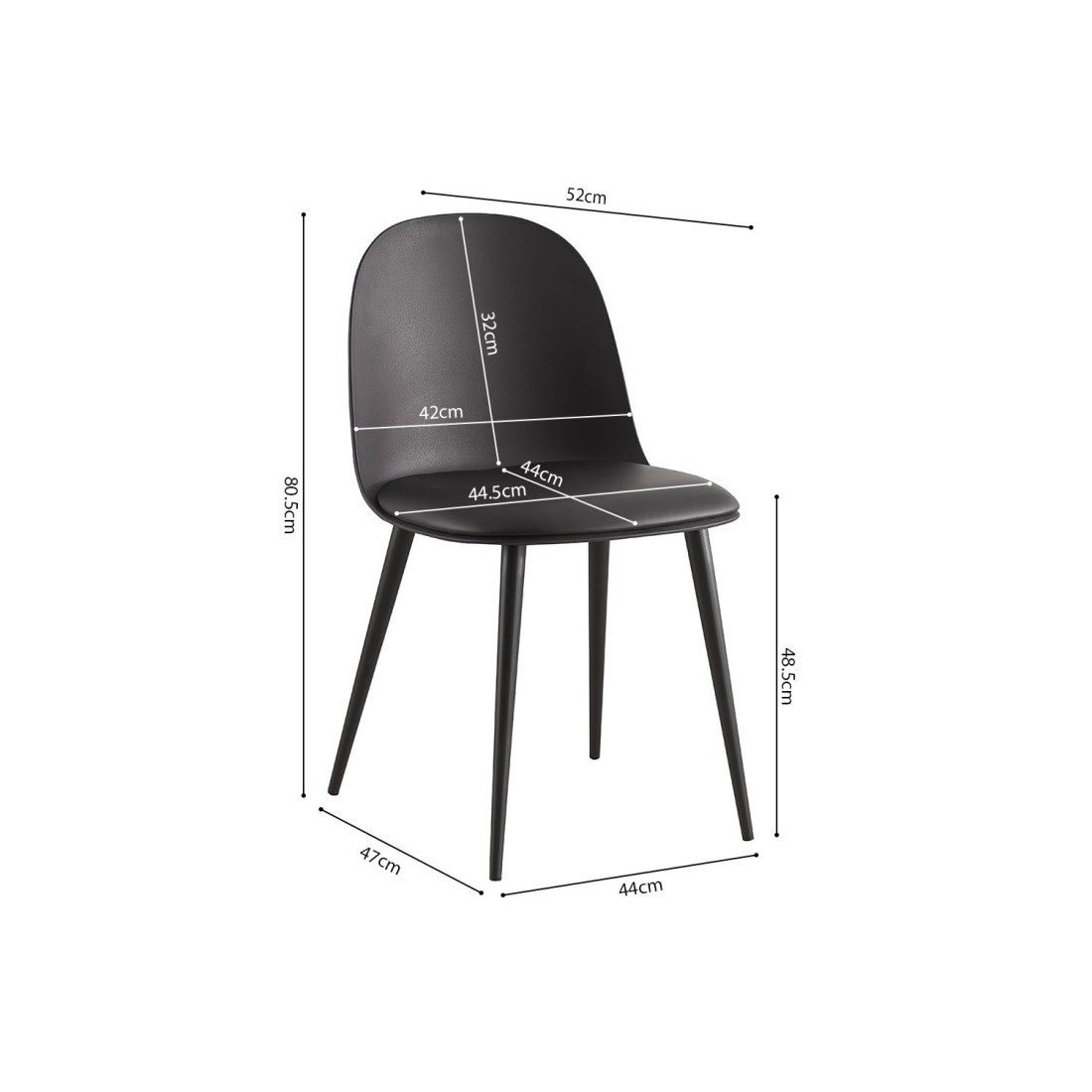 | Libellé | Chaise 'JASMON' coussin PU Noir, dimension H81 x L51 x P44, idéal pour votre cuisine ou salle à manger |