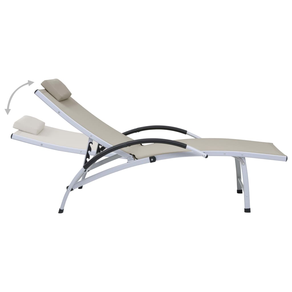 Cette chaise longue réglable sera un excellent choix pour vous détendre et profiter d'une journée dans le jardin ou sur la plage. La chaise longue est équipée d'un dossier réglable et d'un oreiller, afin d'offrir un confort d'assise maximal. Le cadre en aluminium enduit de poudre la rend très stable et durable, et également légère pour faciliter le transport. Couleur : crème et argenté Matériau : textilène, aluminium avec revêtement en poudre Dimensions : 67,5 x 180 x 46 cm (l x P x H) Dossier réglable de 46 à 83 cm Capacité de poids : 150 kg Hauteur de l'accoudoir : 39,5 cm Avec un oreiller L'assemblage est requis
