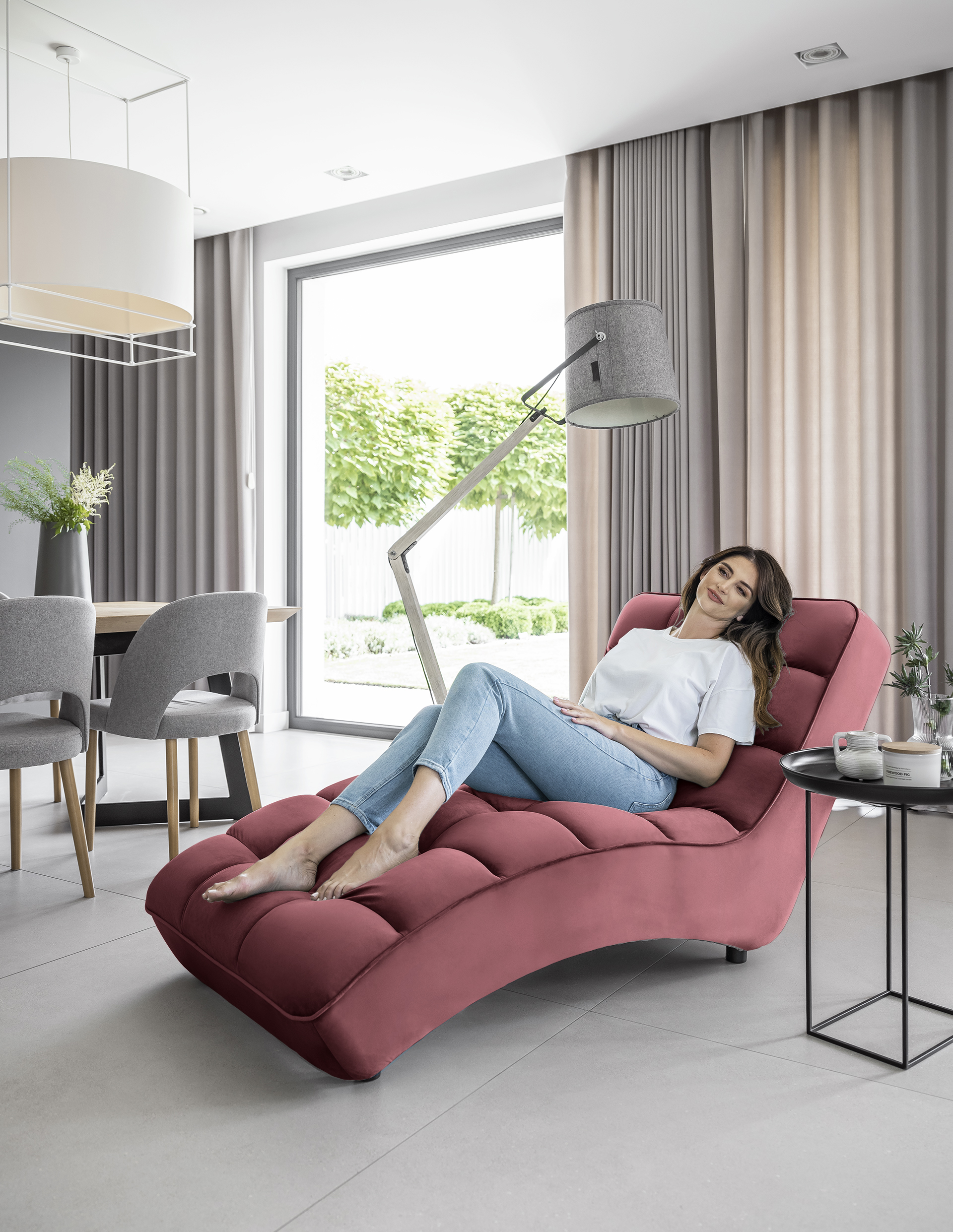 Chaise longue d'intérieur design velours rouge capitonné Rikal