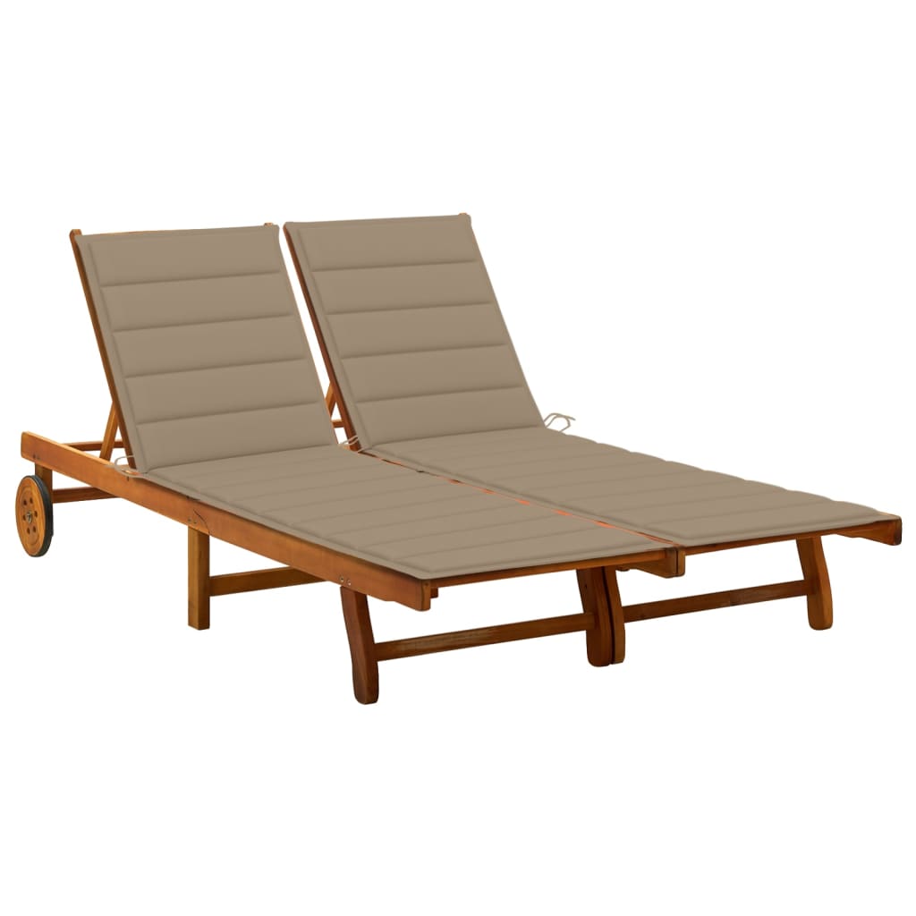 Chaise longue de jardin 2 places avec coussins Acacia solide 8