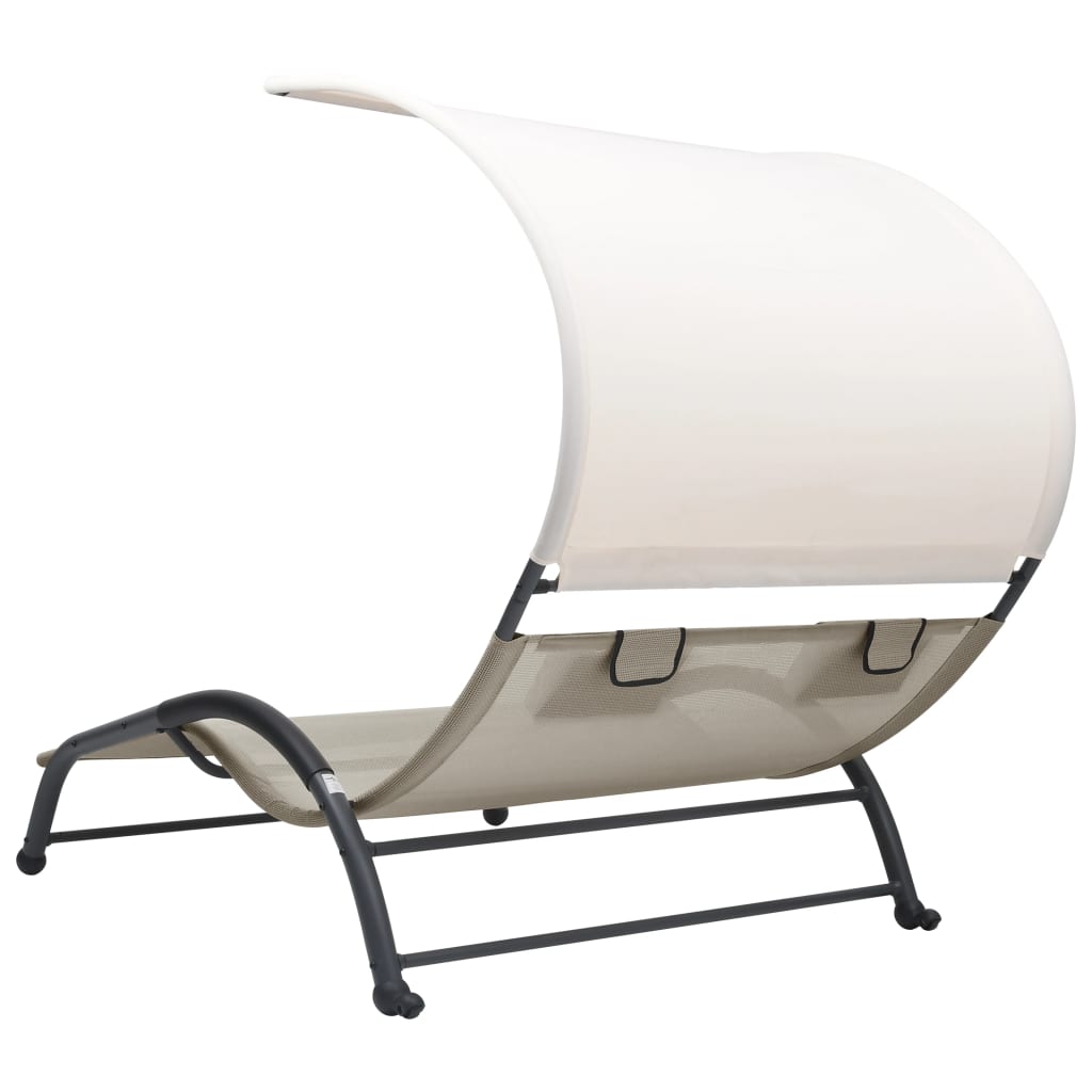 Chaise longue double avec auvent Textilène Crème