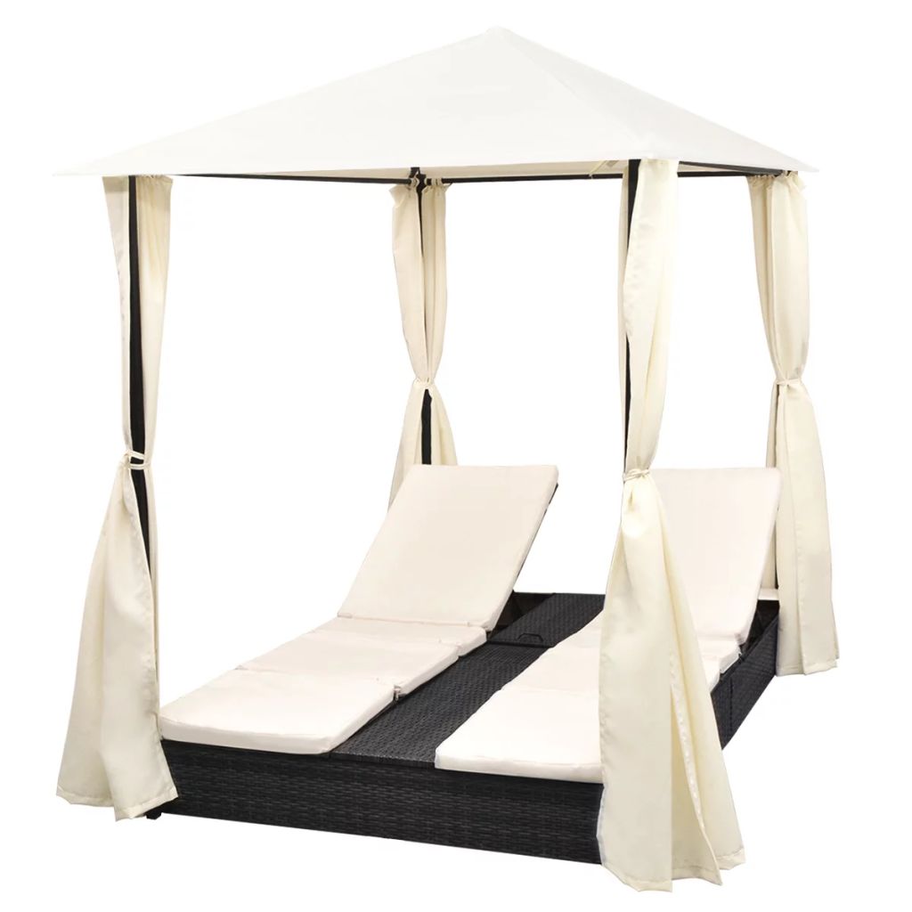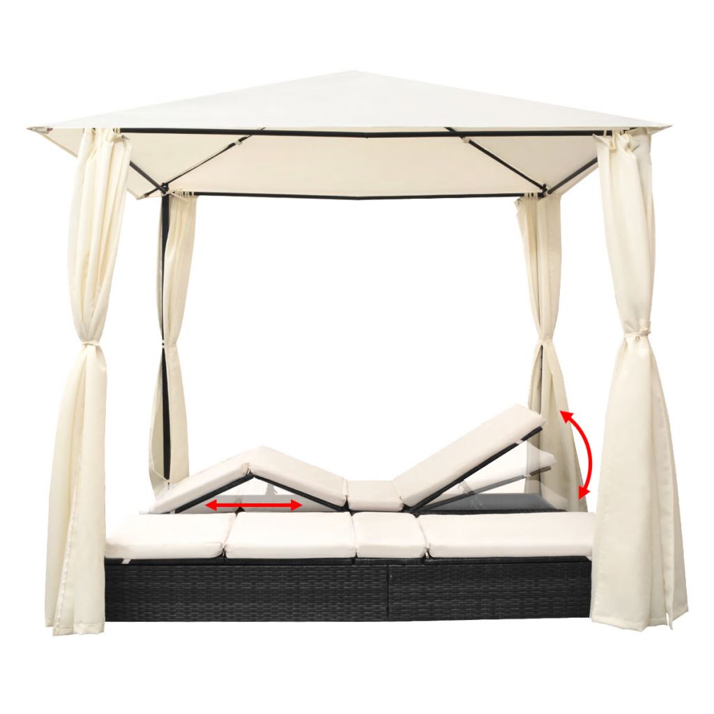 Libellé Chaise longue double avec rideaux Résine tressée Noir