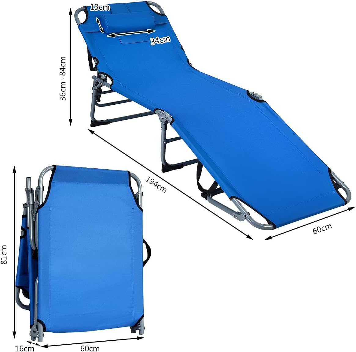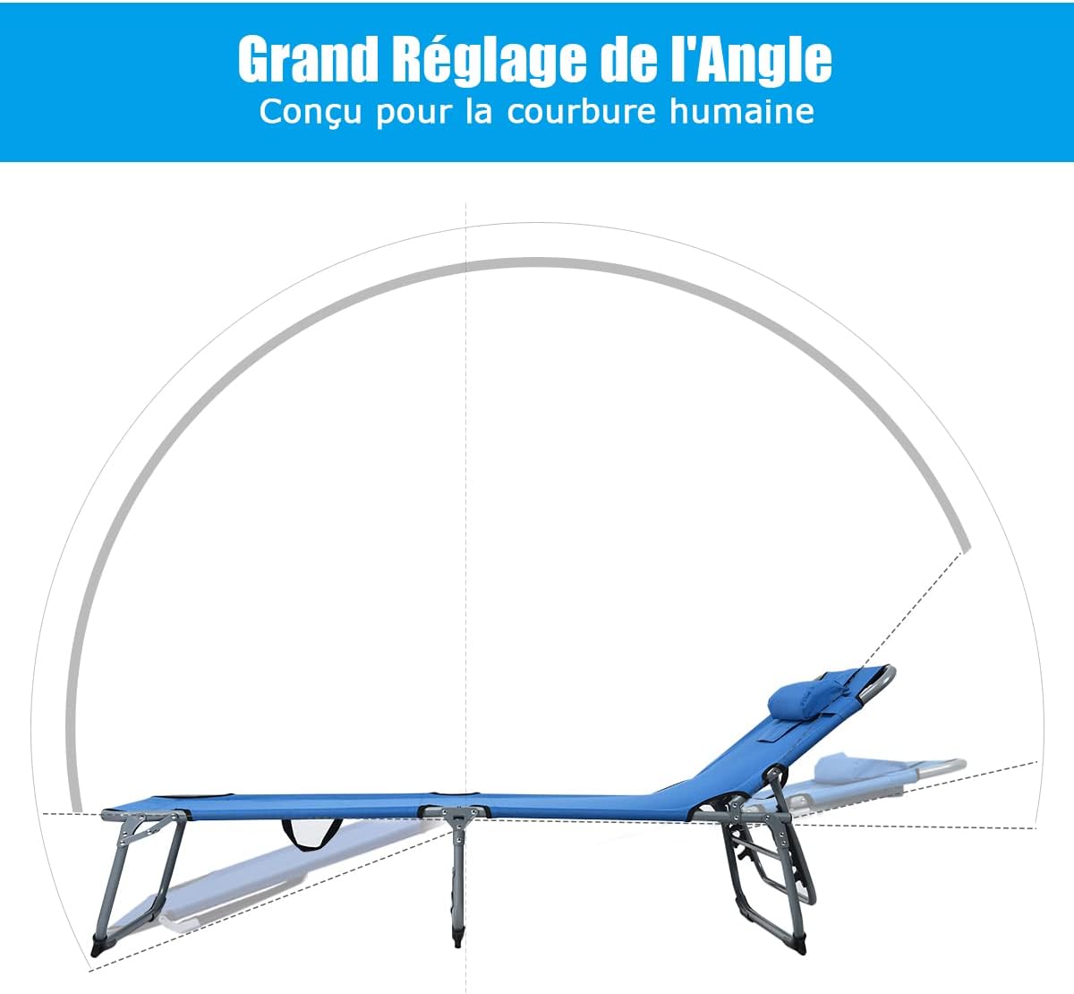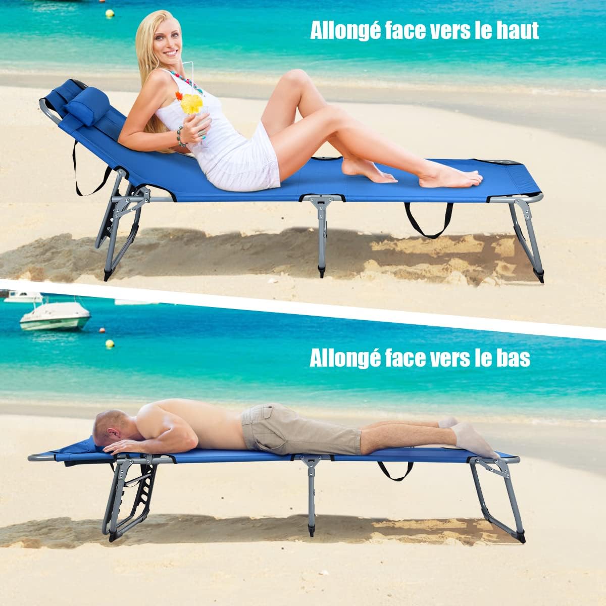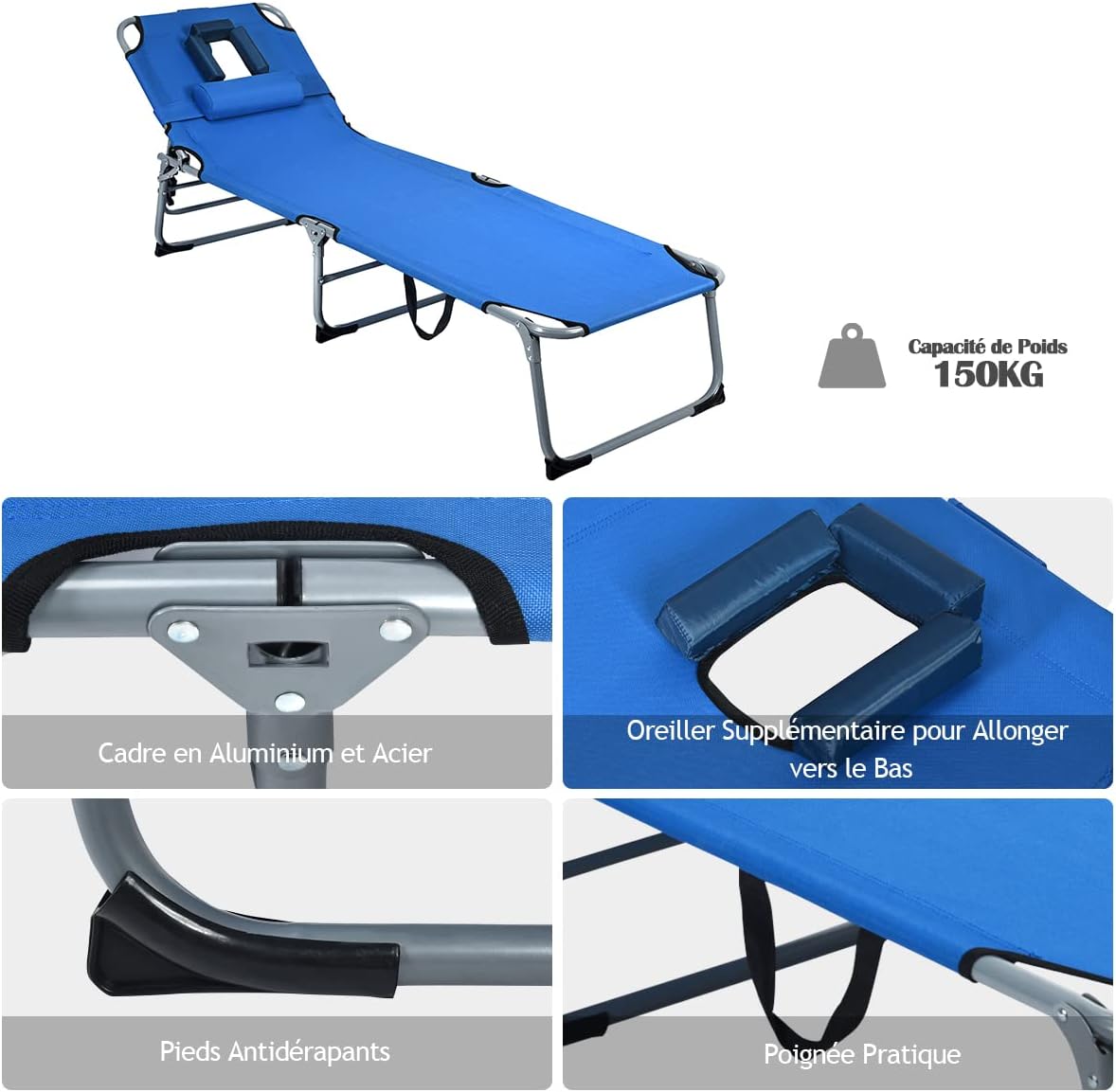 - Design humanisé : Notre chaise longue est équipée d'un oreiller détachable pour servir de repose-tête, de support cervical, de soutien lombaire et d'un trou pour le visage, vous permettant d'utiliser le téléphone ou de lire en bronzant le dos.