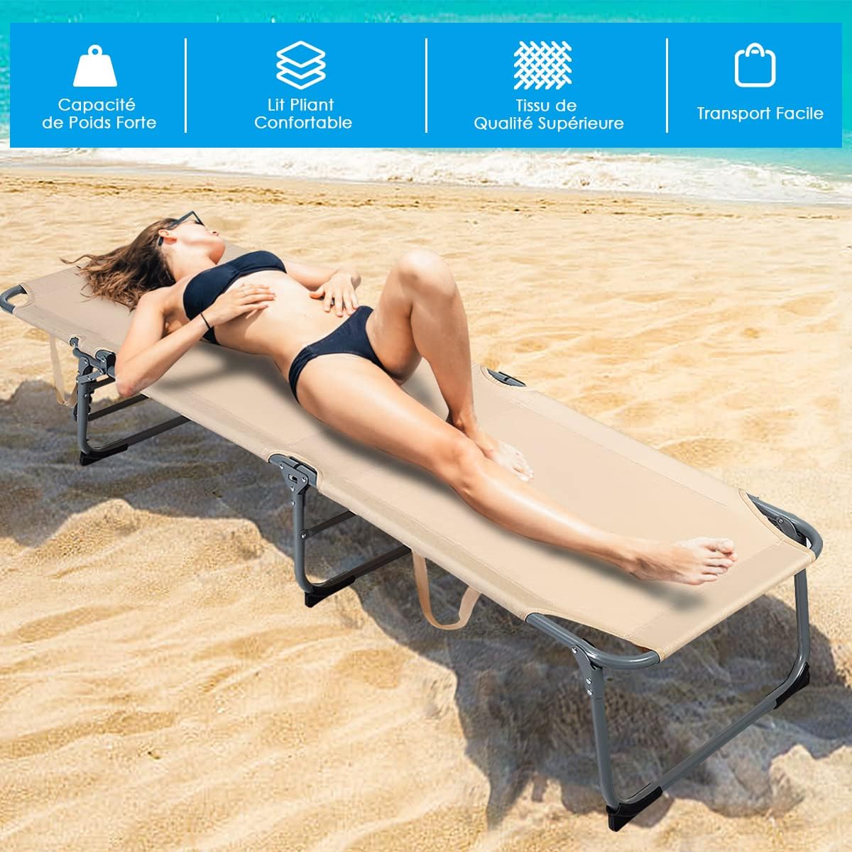 - Chaise pliable portable : Notre chaise longue peut être facilement pliée contre le mur, sous le canapé ou dans le coffre de voiture pour économiser de l'espace, les sangles et le poids net de 6 kg facilient aussi le rangement et le transport.
