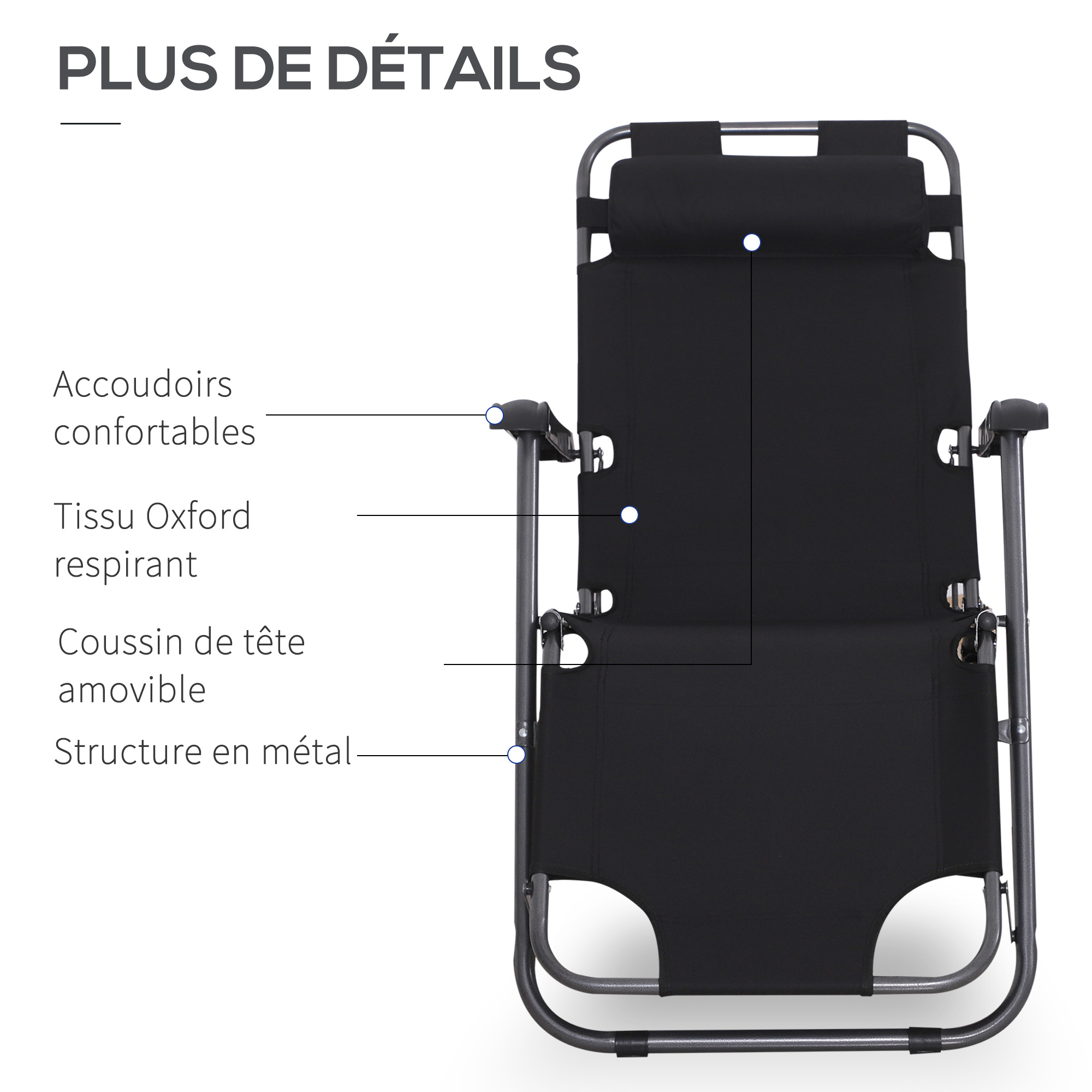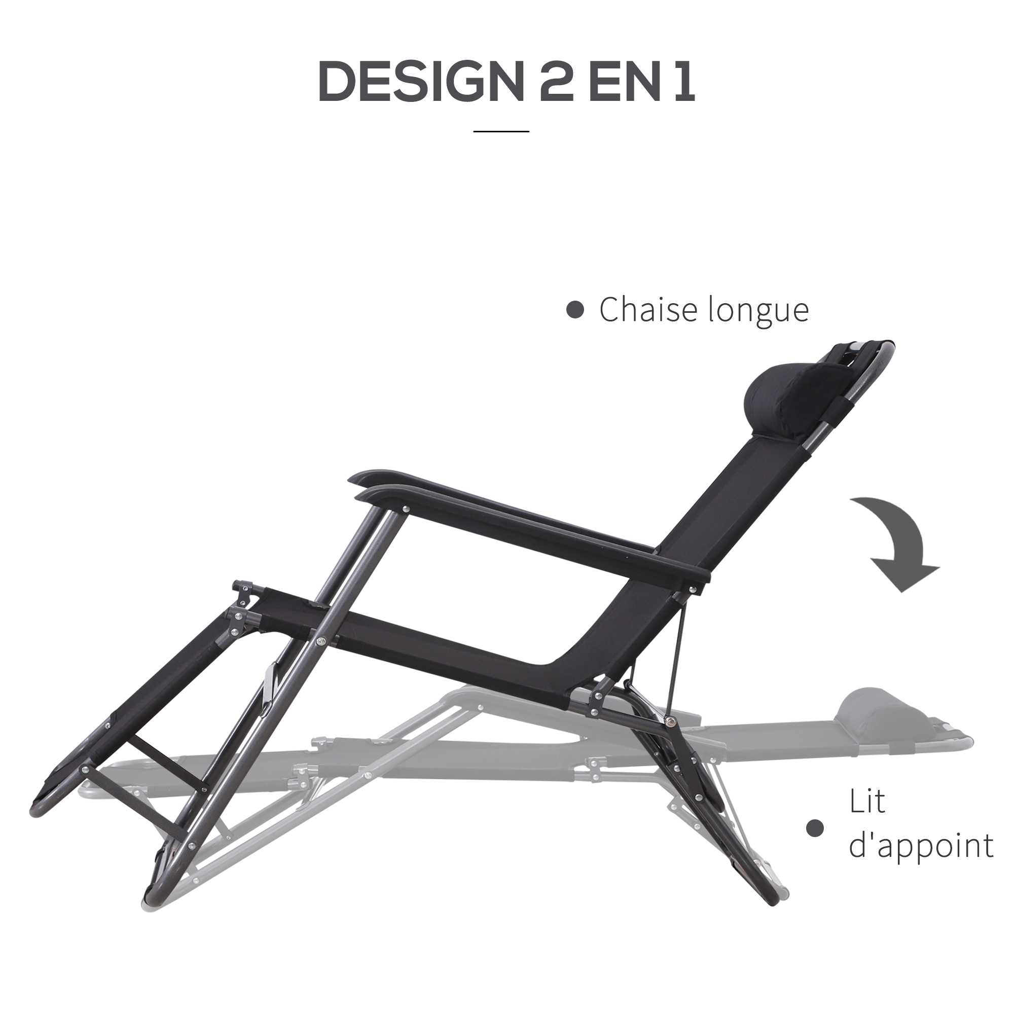 | Libellé | Chaise longue inclinable transat bain de soleil 2 en 1 pliant têtière amovible charge max. 136 Kg toile oxford facile d'entretien noir |