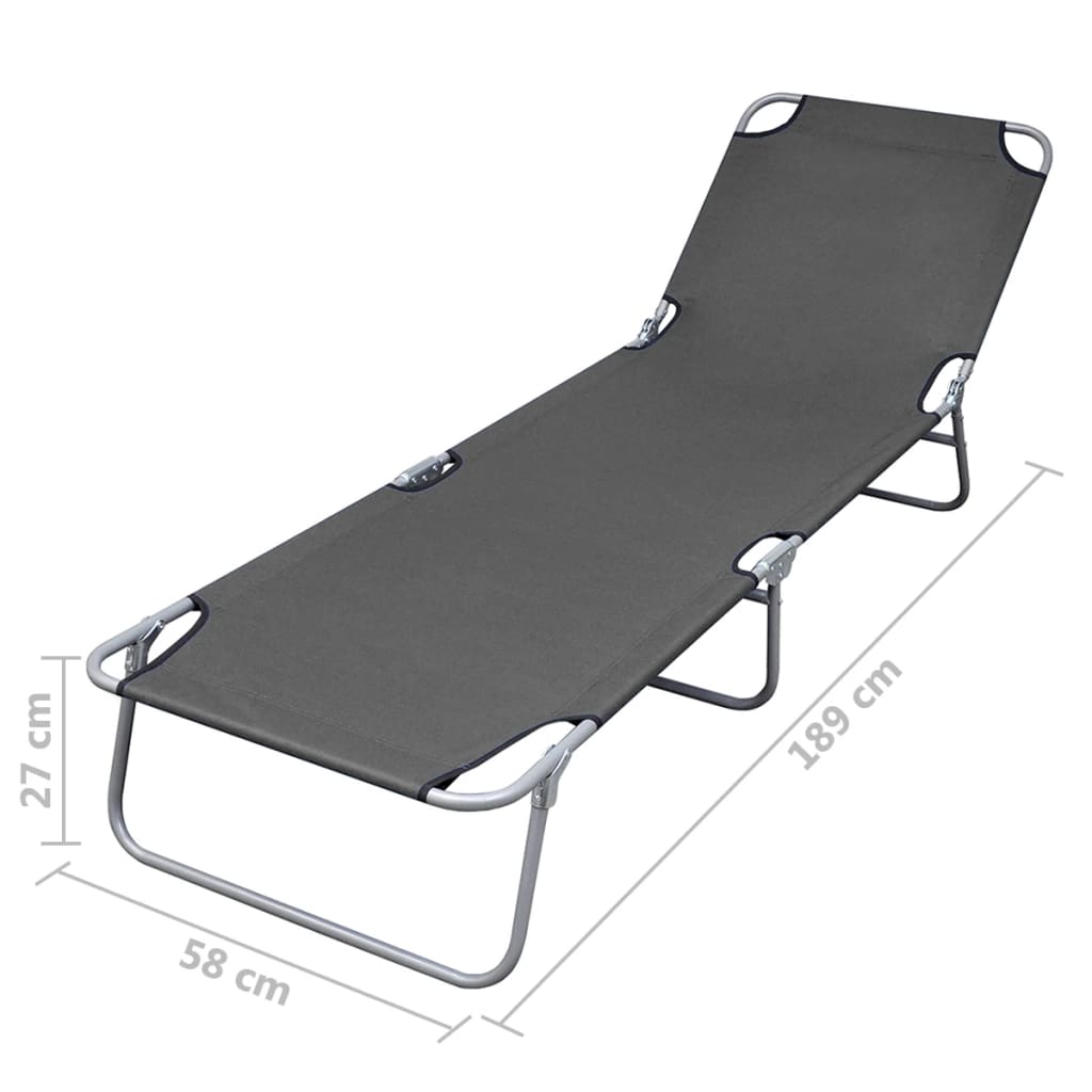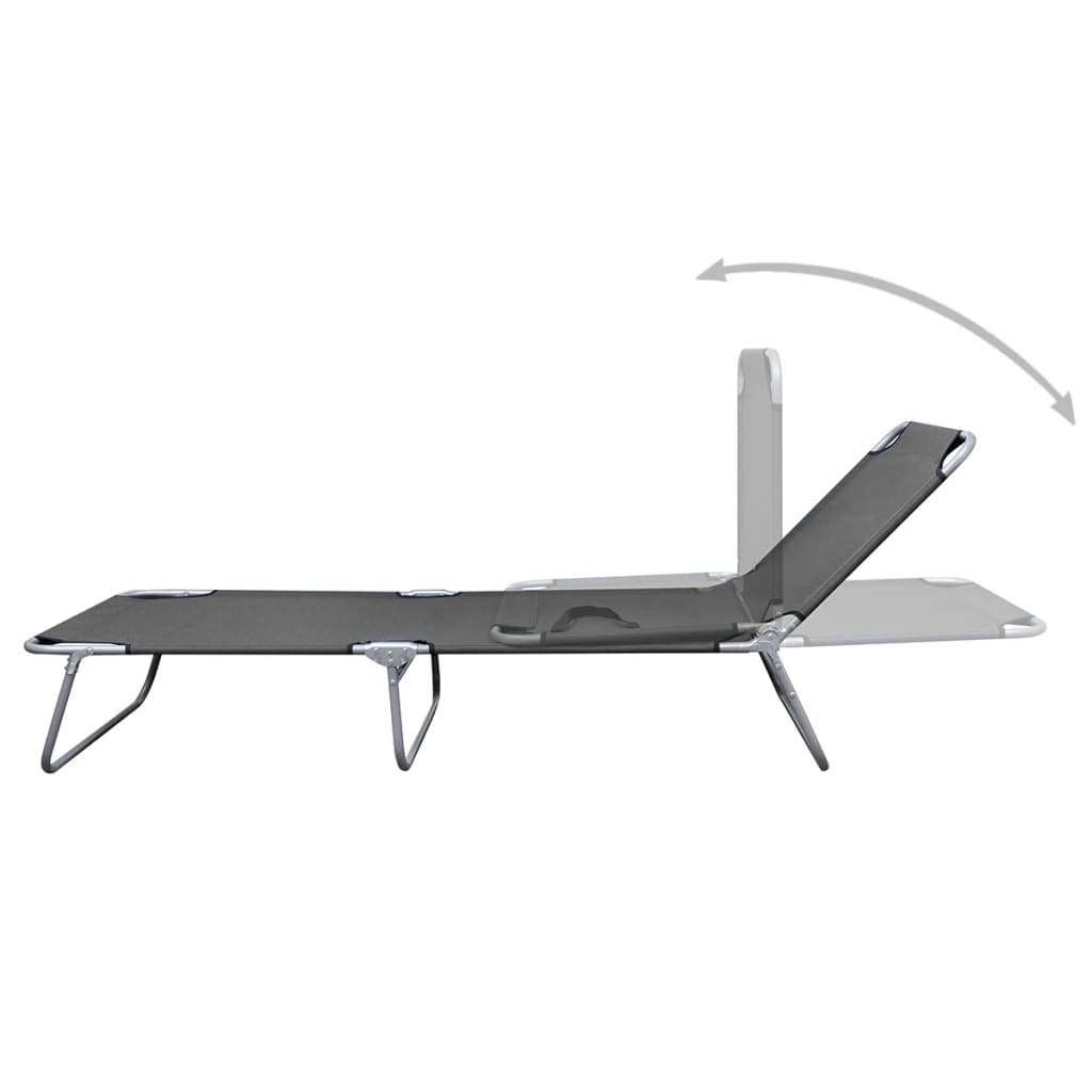 Chaise longue pliable avec dossier réglable Gris