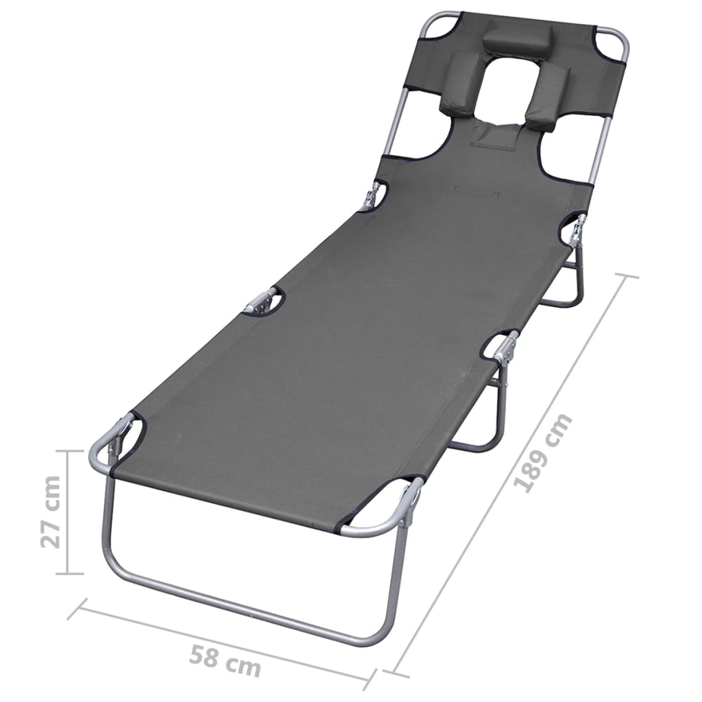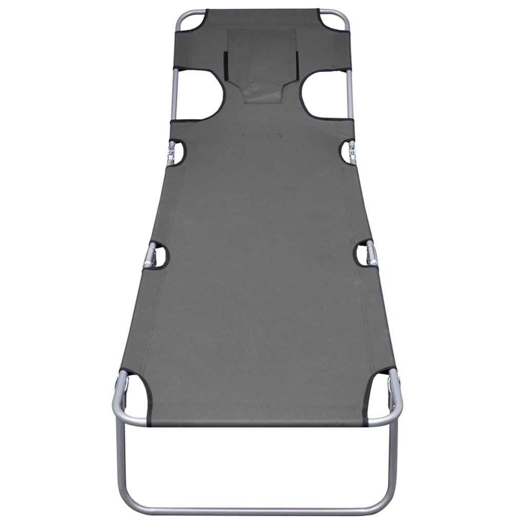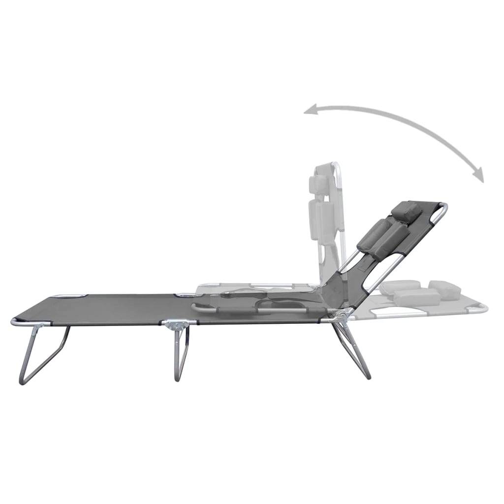 Chaise longue pliable et coussin de tête Dossier réglable Gris