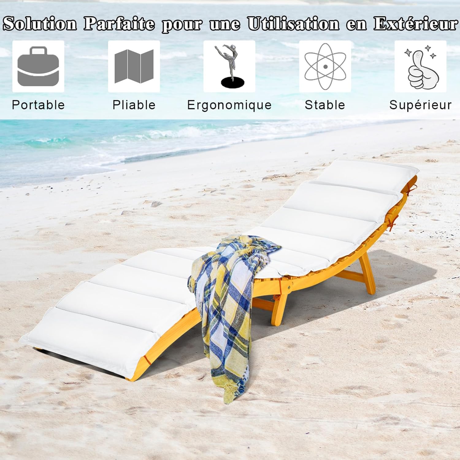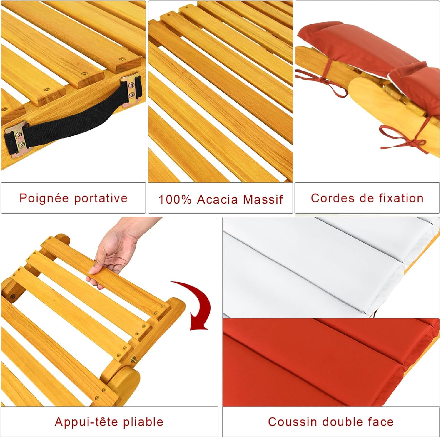| Libellé | Chaise longue pliante, bain de soleil, avec coussin, appui-tête, chaise longue extérieur (acacia, 1) |