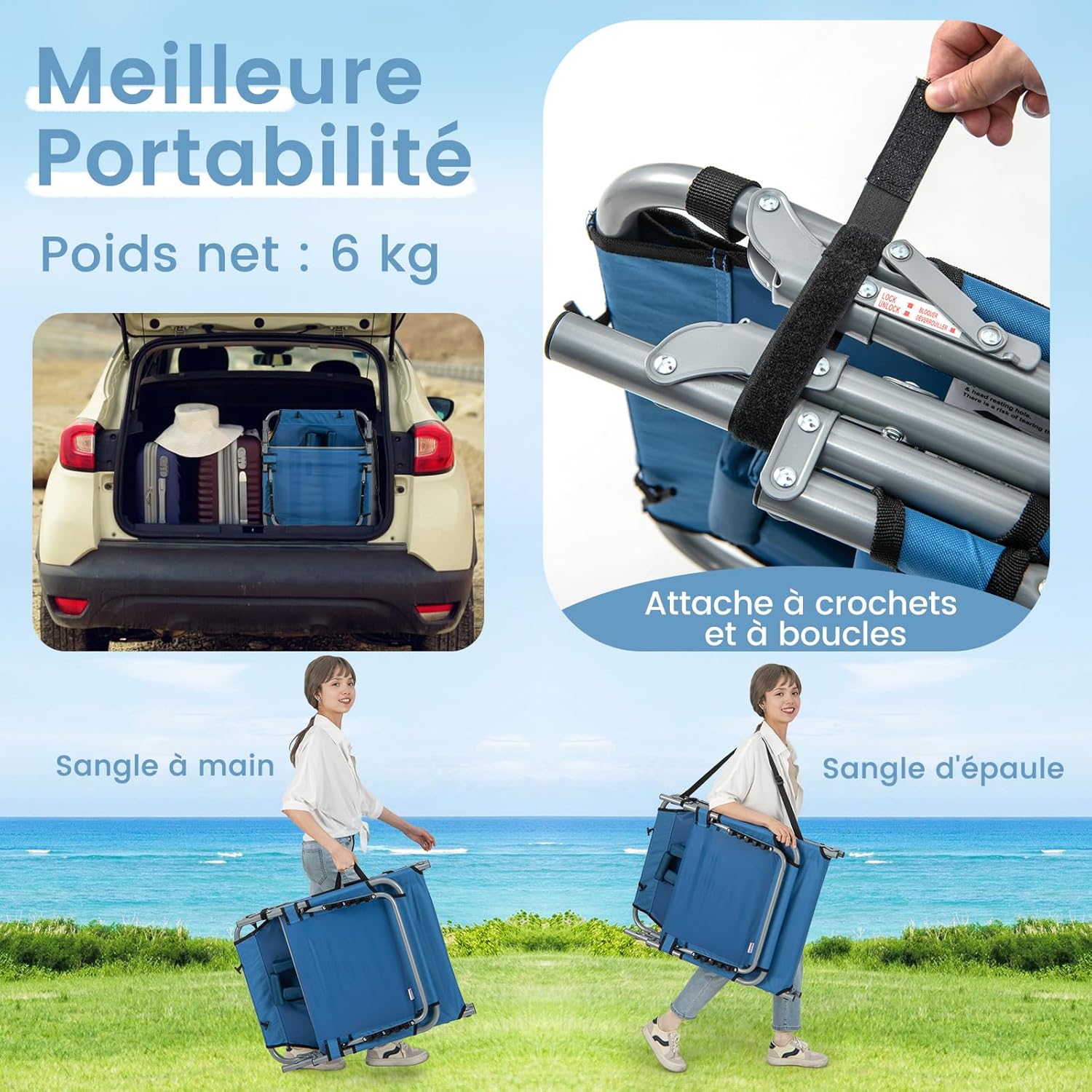- Chaise longue de bronzage parfaite : Dotée d'un style élégant et simple, la chaise longue présente un design unique et pratique pour vous permettre de regarder le soleil se coucher lentement. Idéal pour le jardin, la terrasse, la plage, le camping, la pêche et partout où vous avez besoin de passer votre temps libre pour vous détendre.
