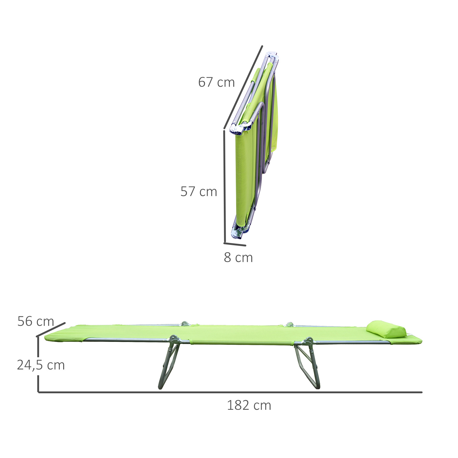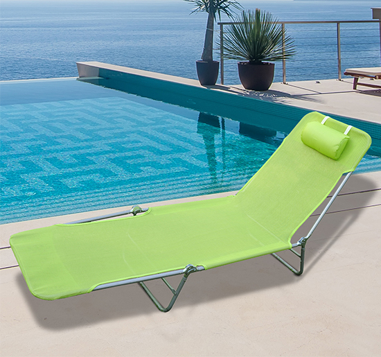 | Libellé | Chaise longue pliante bain de soleil inclinable transat textilène lit jardin plage 182L x 56l x 24,5H cm vert |