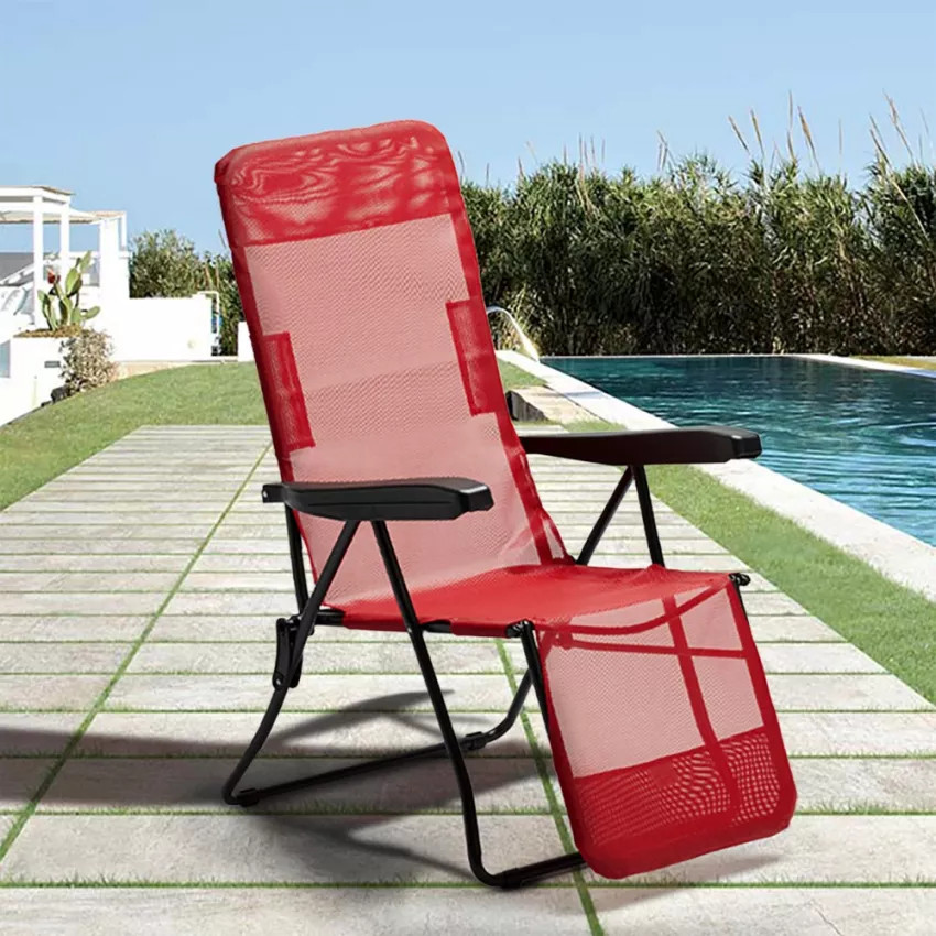 Chaise longue de plage et de jardin pliable avec accoudoirs en acier.
