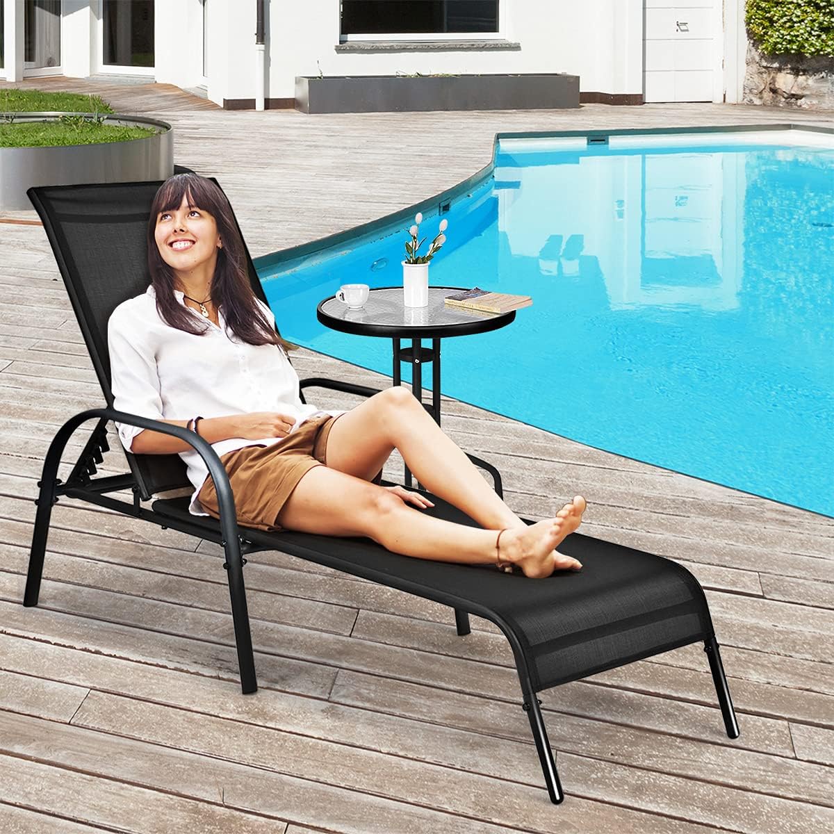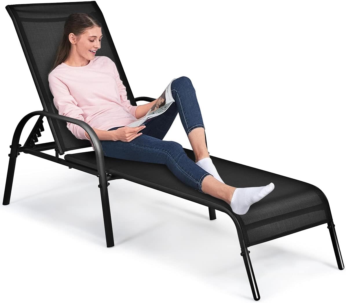 - Dossier réglable: La chaise longue jardin offre 5 positions réglables pour répondre à vos besoins, vous permettant de vous asseoir ou de vous allonger pour profiter de bains de soleil, de lecture, d'écoute de musique etc.