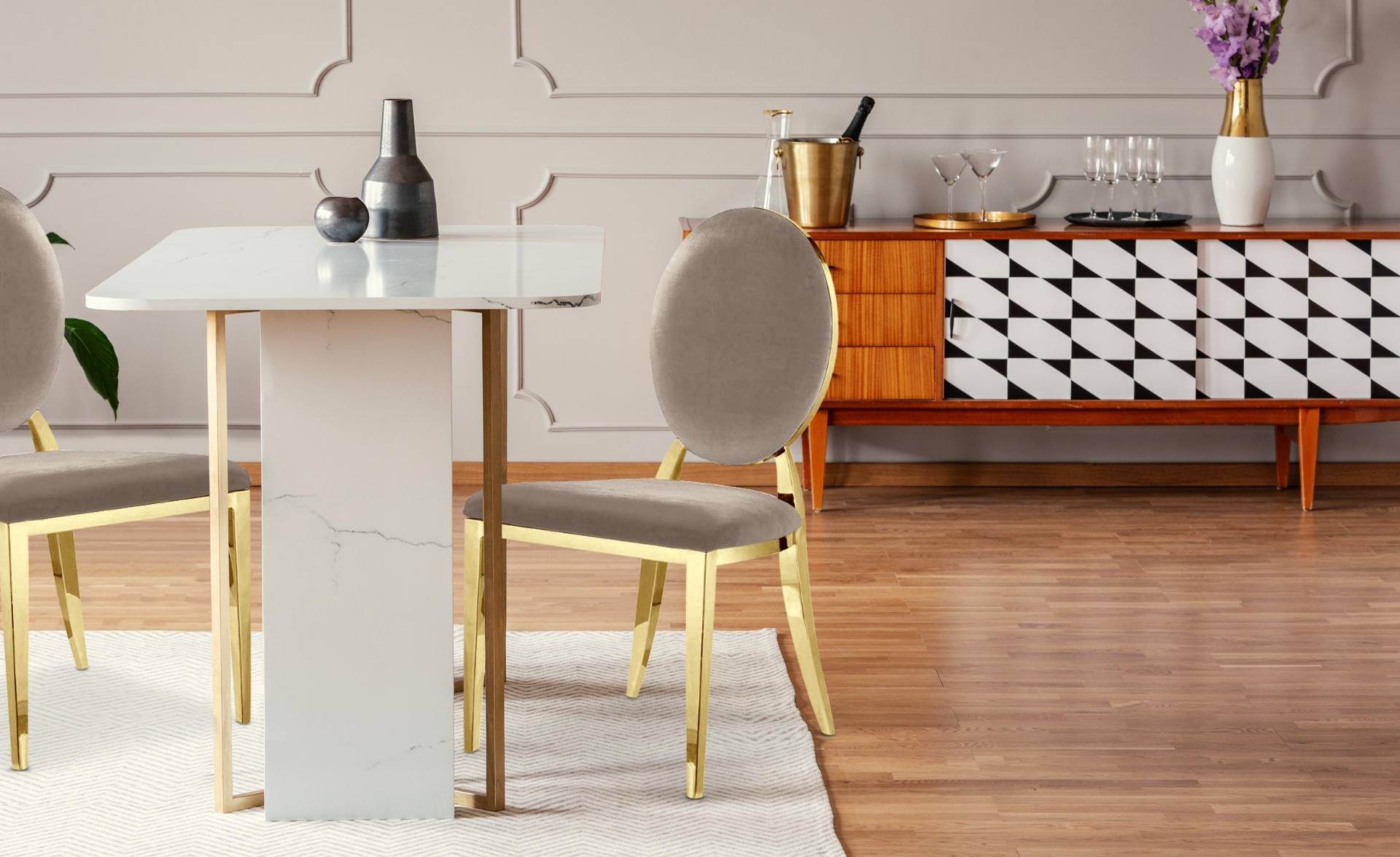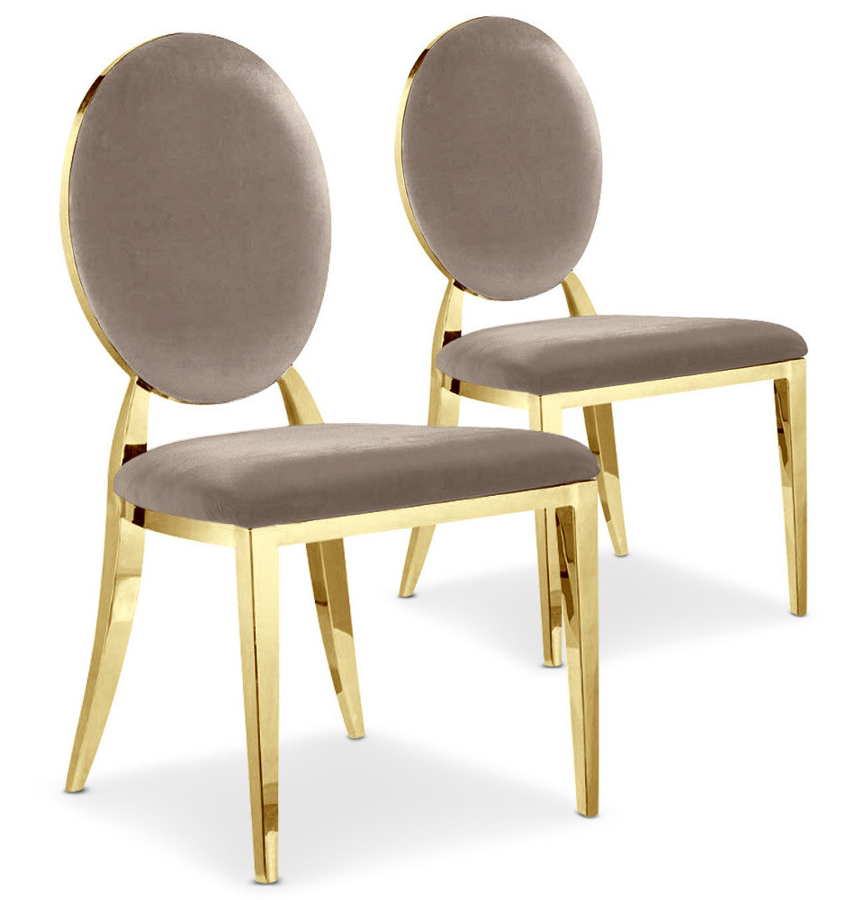 | Libellé | Chaise médaillon velours taupe et pieds métal doré Louis XVI - Lot de 2 |