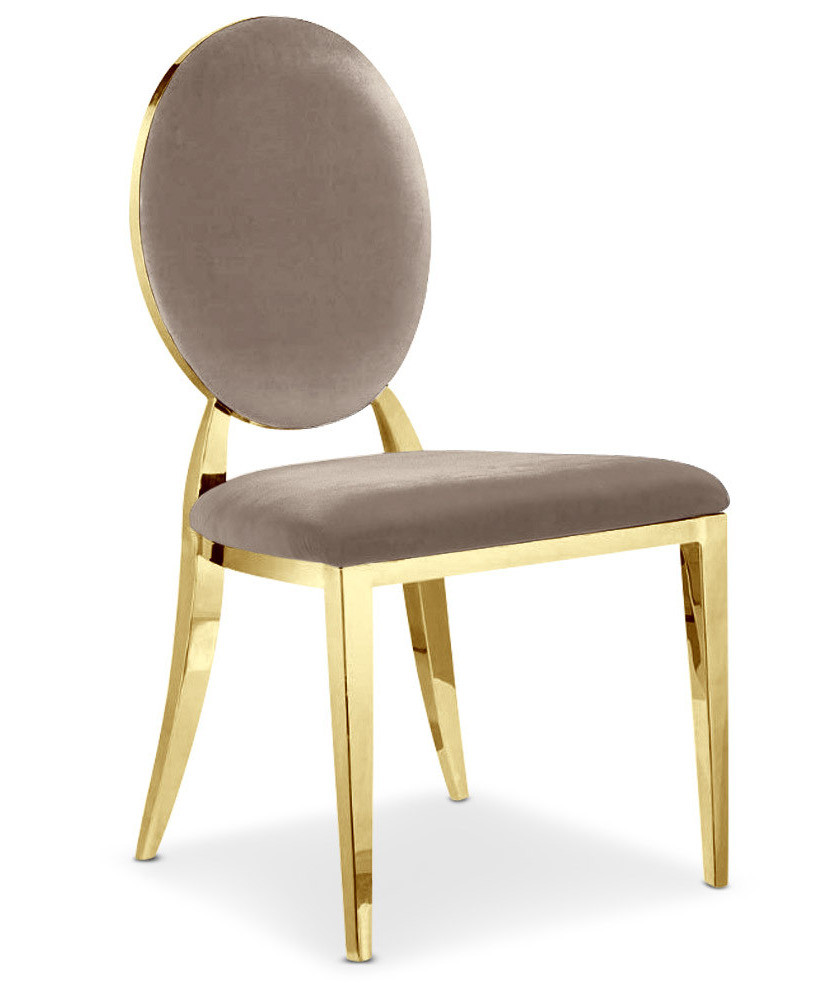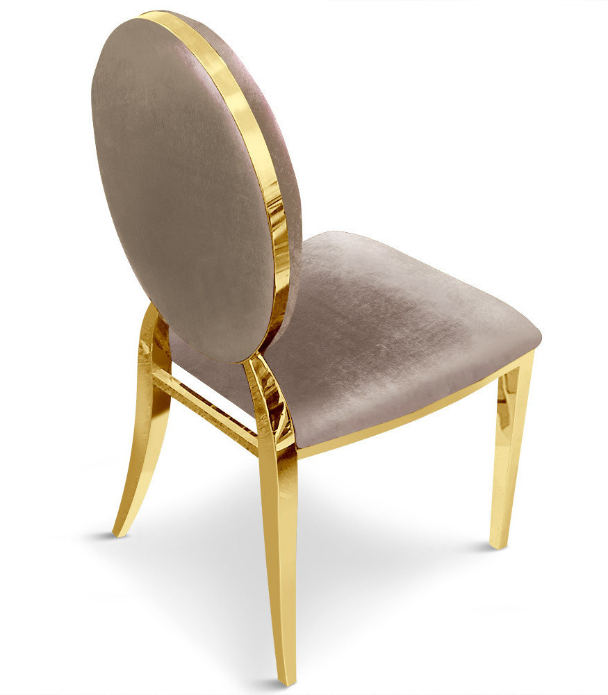 Chaise médaillon velours taupe et pieds métal doré Louis XVI - Lot de 2