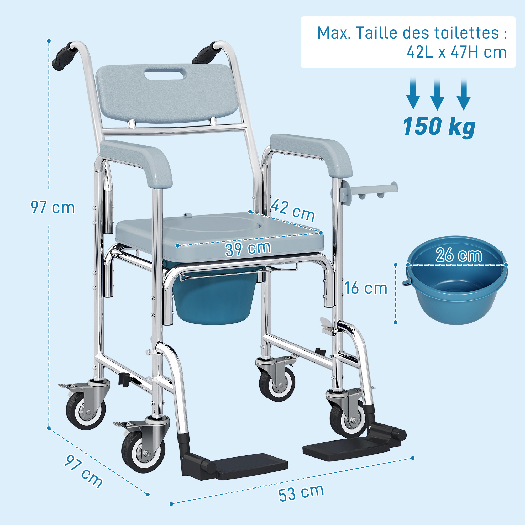Chaise percée médicale à roulettes - repose-pieds, dossier, accoudoirs, pot amovible, support papier - al